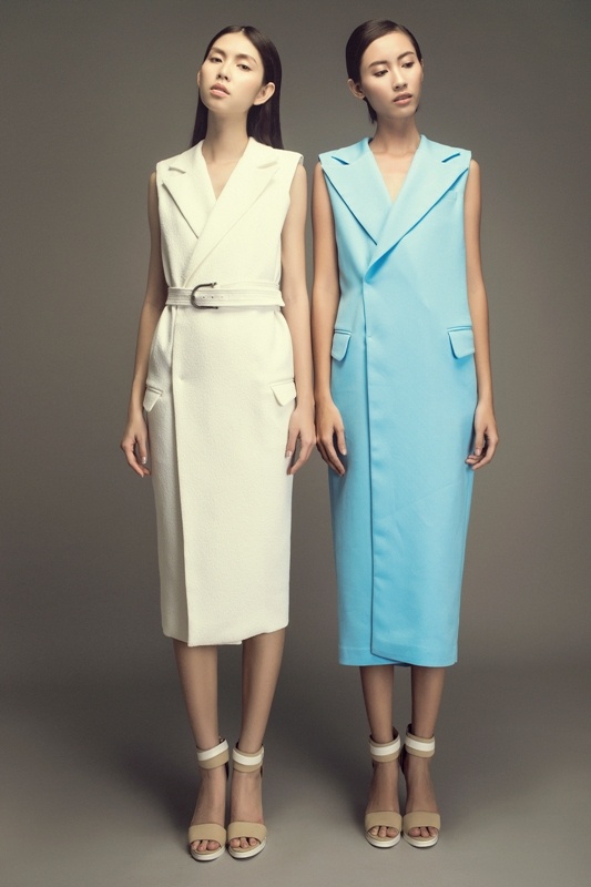 | Vest là một trong những kiểu dáng không thể thiếu ở mùa thu. Kiểu trang phục mang lại vẻ chuyên nghiệp cho các quý cô văn phòng. Tuy nhiên, kiểu dáng được cách tân của Huy Trần khá bắt mắt và hiện đại với phom váy dài, lược bỏ tay áo, thắt lưng vải làm điểm nhấn cổ điển. |
