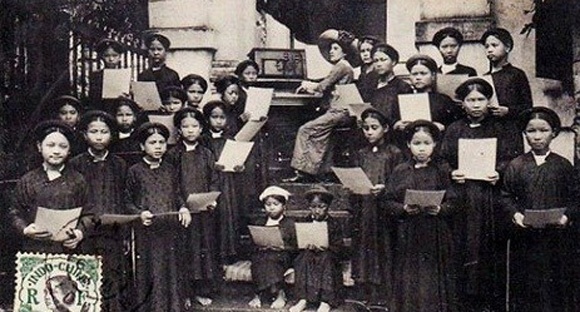 | Không chỉ bây giờ, từ xưa đến nay, đồng phục vẫn luôn là bộ trang phục gắn liền cuộc sống của mỗi học sinh. Hình ảnh về những nữ sinh Hà Nội thời Pháp thuộc trong bộ đồng phục khăn đóng áo dài. |