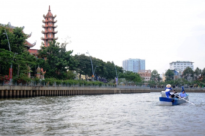 Sáng 2/9, vừa bước lên thuyền du ngoạn trên kênh Nhiêu Lộc - Thị Nghè, chúng tôi ngỡ ngàng khi được tận hưởng một góc nhìn khác về Sài Gòn văn minh, hiện đại mà gần gũi, thân quen. Không phải từ trên cao hay từ những tuyến đường bộ hành mà từ những chiếc thuyền chèo chống đã có từ thuở cha ông mở cõi về phương Nam.