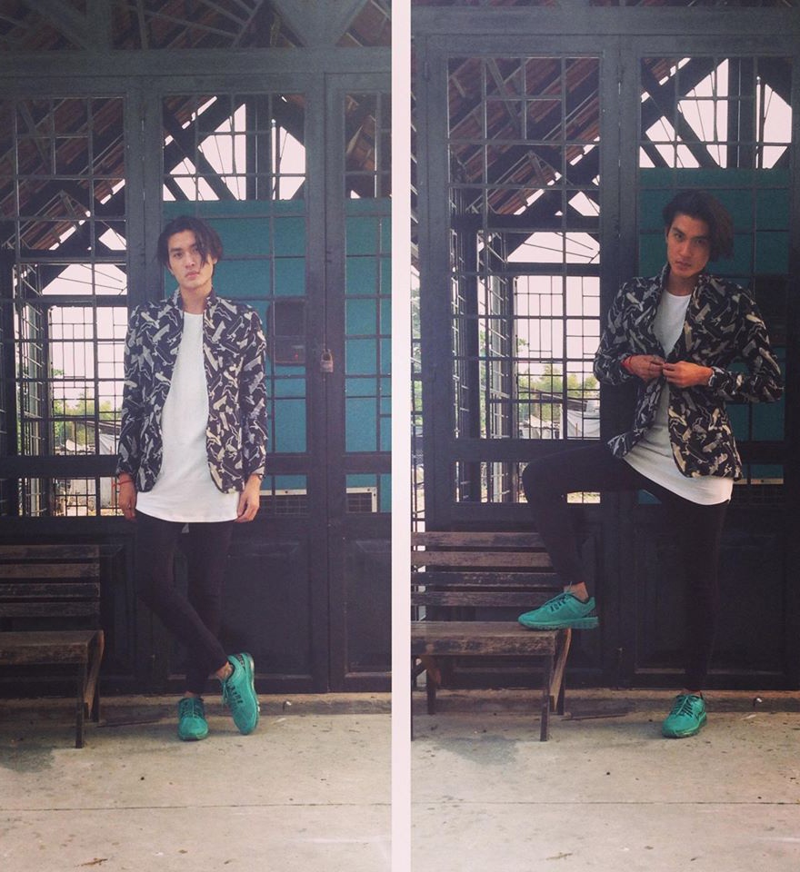 Giày bata cũng thuộc sở trường của nam người mẫu khi anh sử dụng nhiều trong thời gian gần đây. Những đôi giày màu sắc thể hiện sự tươi trẻ và cá tính của chàng người mẫu 22 tuổi.