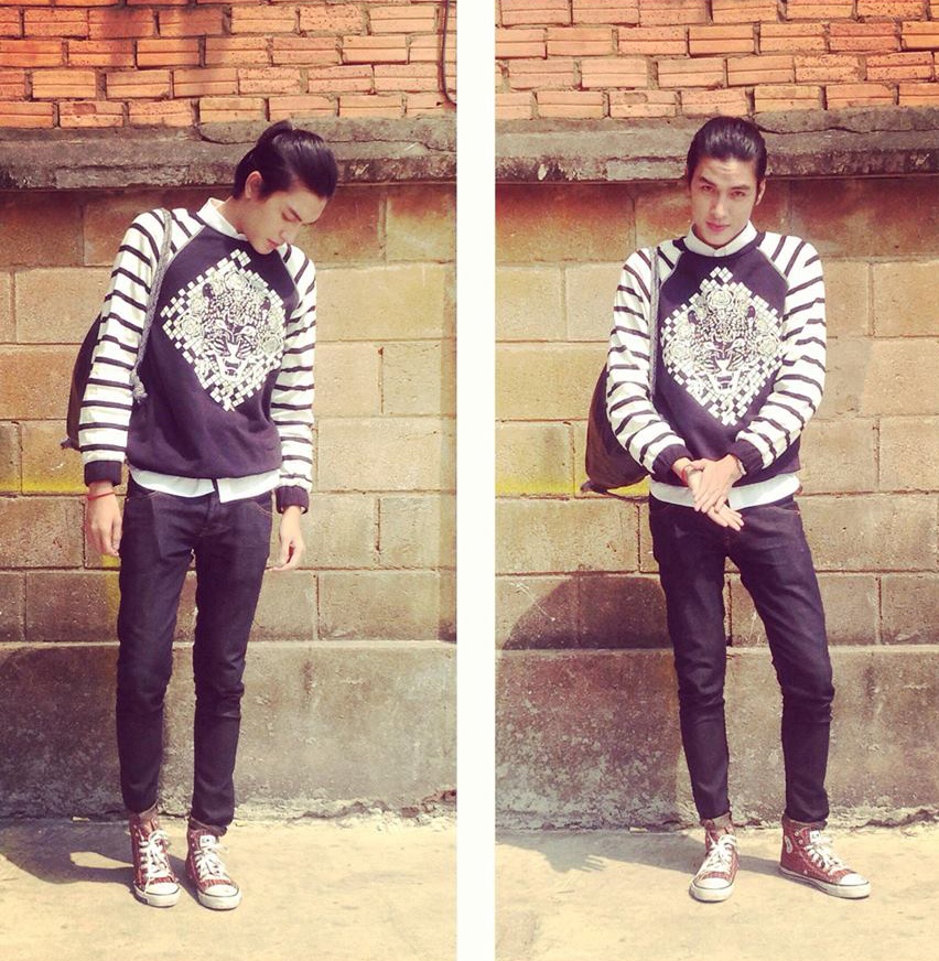 Nam người mẫu từng dự thi ''Vietnam's Next Top Model 2013'' được các tín đồ sành mốt quan tâm nhờ gu thời trang đời thường tinh nghịch và phủi bụi.