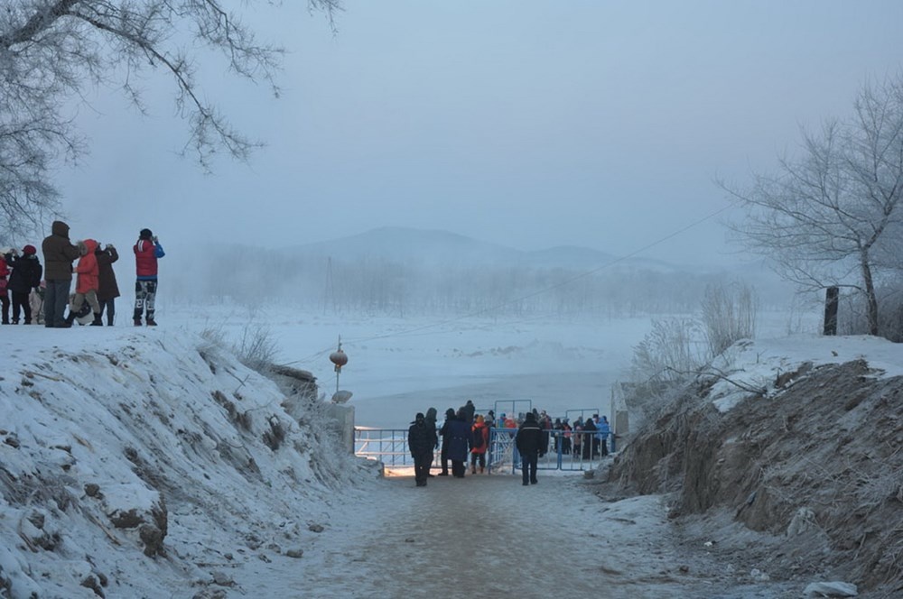 | Bất chấp giá rét, du khách vẫn nối đuôi nhau lên núi Trường Bạch. |