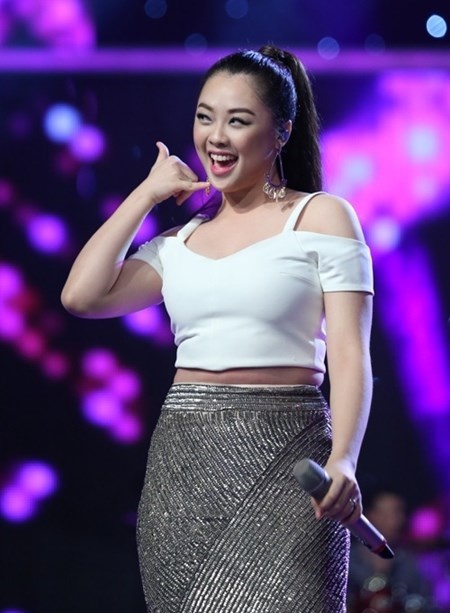| Mấy tháng sinh hoạt cùng các thí sinh ở Vietnam Idol, Khánh Tiên gần đây trông tròn trịa và bụ bẫm hơn nhưng cô vẫn xinh đẹp, nổi bật nhất giữa dàn thí sinh nữ. |