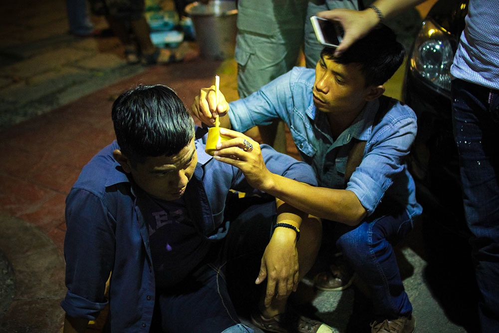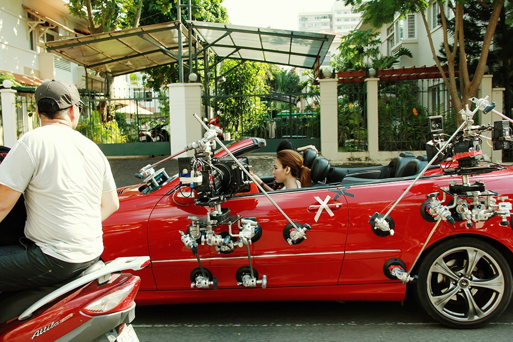 | Ngân Khánh là người lái xe và Đức Thịnh được “gắn” trên đầu xe hơi bởi một sợi dây bảo hiểm khá mỏng. Trong suốt quá trình thực hiện, cảnh quay này đã mang lại cho ê-kíp nhiều tiếng cười cũng như sự chú ý của khán giả. |