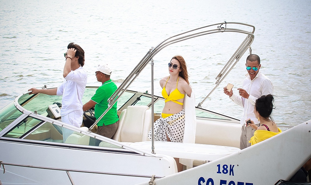 Nữ diễn viên xinh đẹp và người mẫu Hà Việt Dũng gặp nguy hiểm khi nhảy từ du thuyền xuống biển trong quá trình quay "Ma Dai".