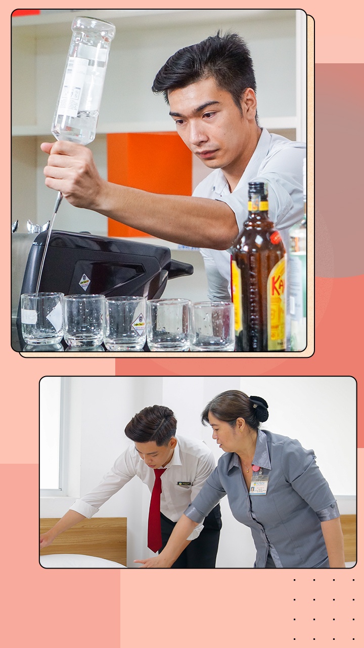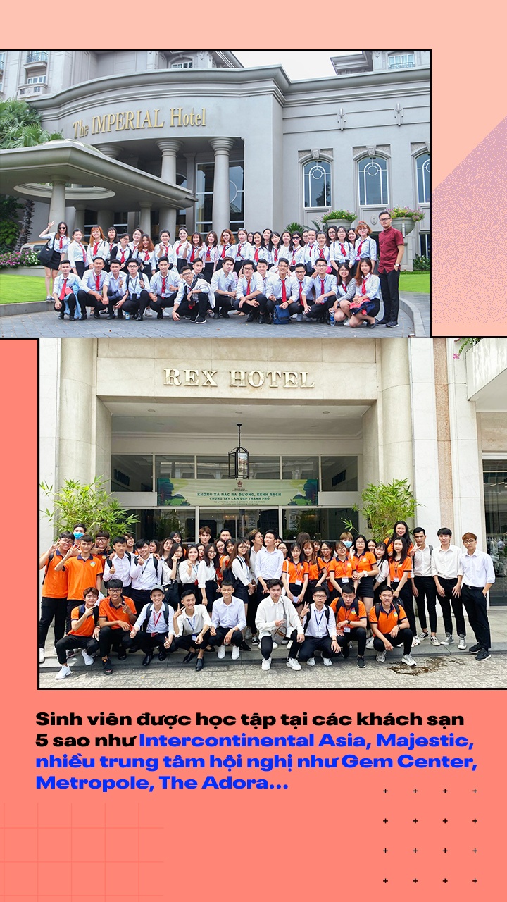 Theo đó, sinh viên được học tập tại các khách sạn 5 sao như Intercontinental Asia, Majestic, nhiều trung tâm hội nghị như Gem Center, Metropole, The Adora... để nâng cao nghiệp vụ, kỹ năng, cách thức phục vụ, giám sát trong tất cả bộ phận buồng (phòng), bếp, tiền sảnh...
