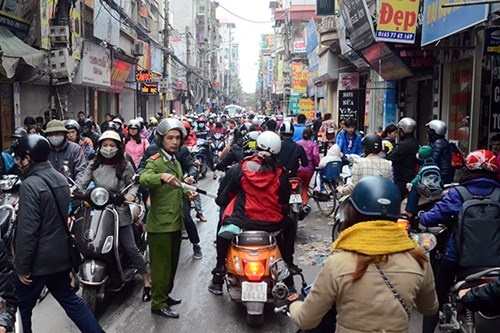 | Lực lượng Công an vừa đảm bảo an ninh trật tự vừa tổ chức phân luồng đảm bảo giao thông. |