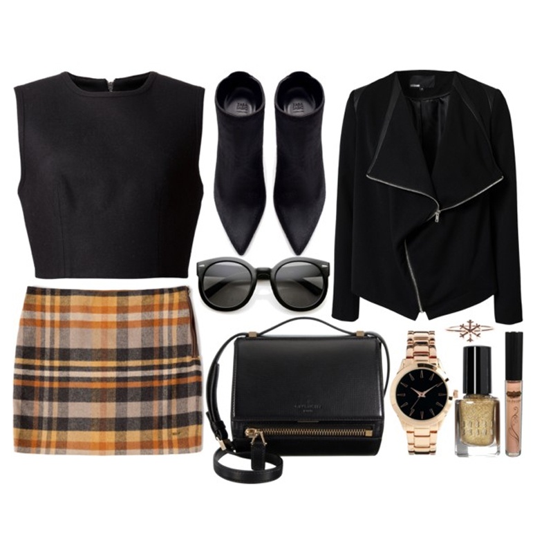 | Bạn cũng có thể kết hợp cặp đôi crop top - áo khoác da đi cùng với những chiếc váy ngắn tạo nét trẻ trung.
