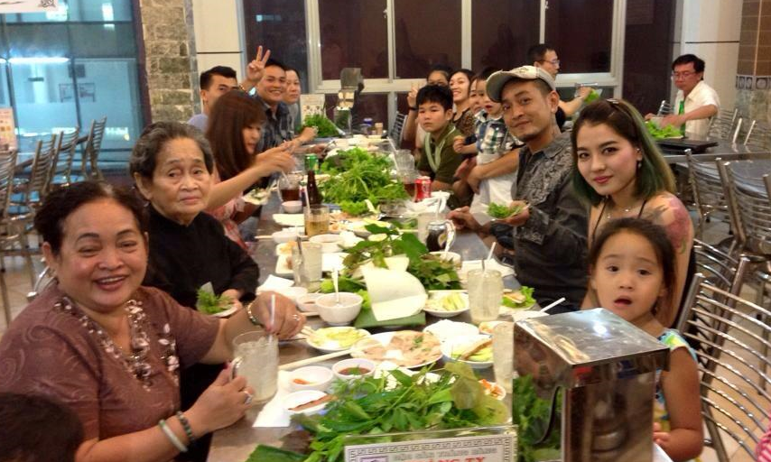 | Trong ngày Gia đình Việt Nam 2015, vợ chồng xăm trổ có buổi tiệc ăn uống gặp mặt tất cả người thân. Mỹ Linh cho biết, đây là tục lệ quen thuộc hàng năm của gia đình cô. "Gia đình là tế bào của xã hội, vì vậy chúng tôi luôn sống tốt và làm việc có ích để con cháu noi theo", Anh Tú chia sẻ. |