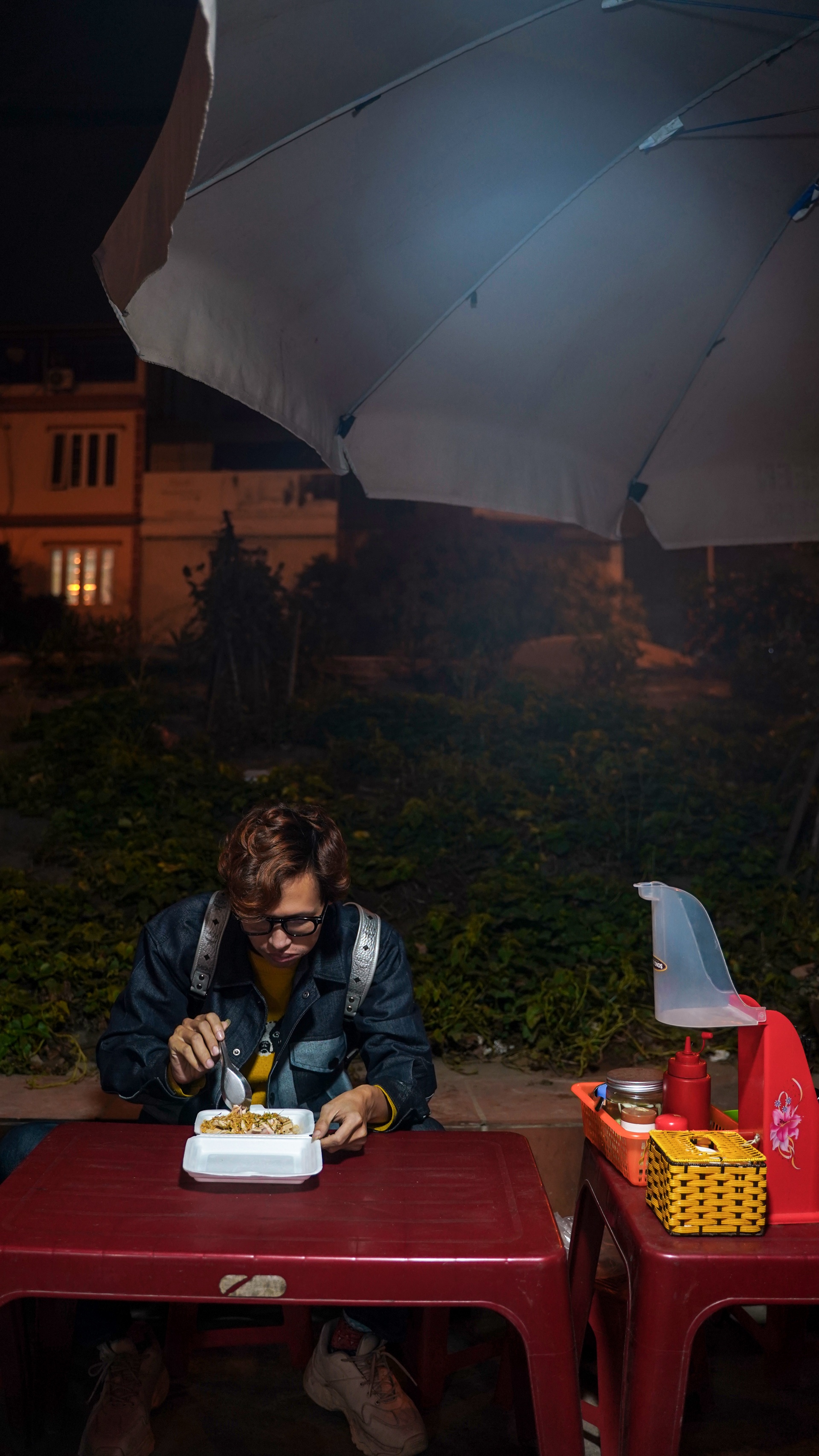 | Khi ê-kíp chưa đến, tôi tranh thủ đến quán xôi mua đồ ăn sáng. Đối với nghề stylist, việc ăn uống không có giờ cố định. |