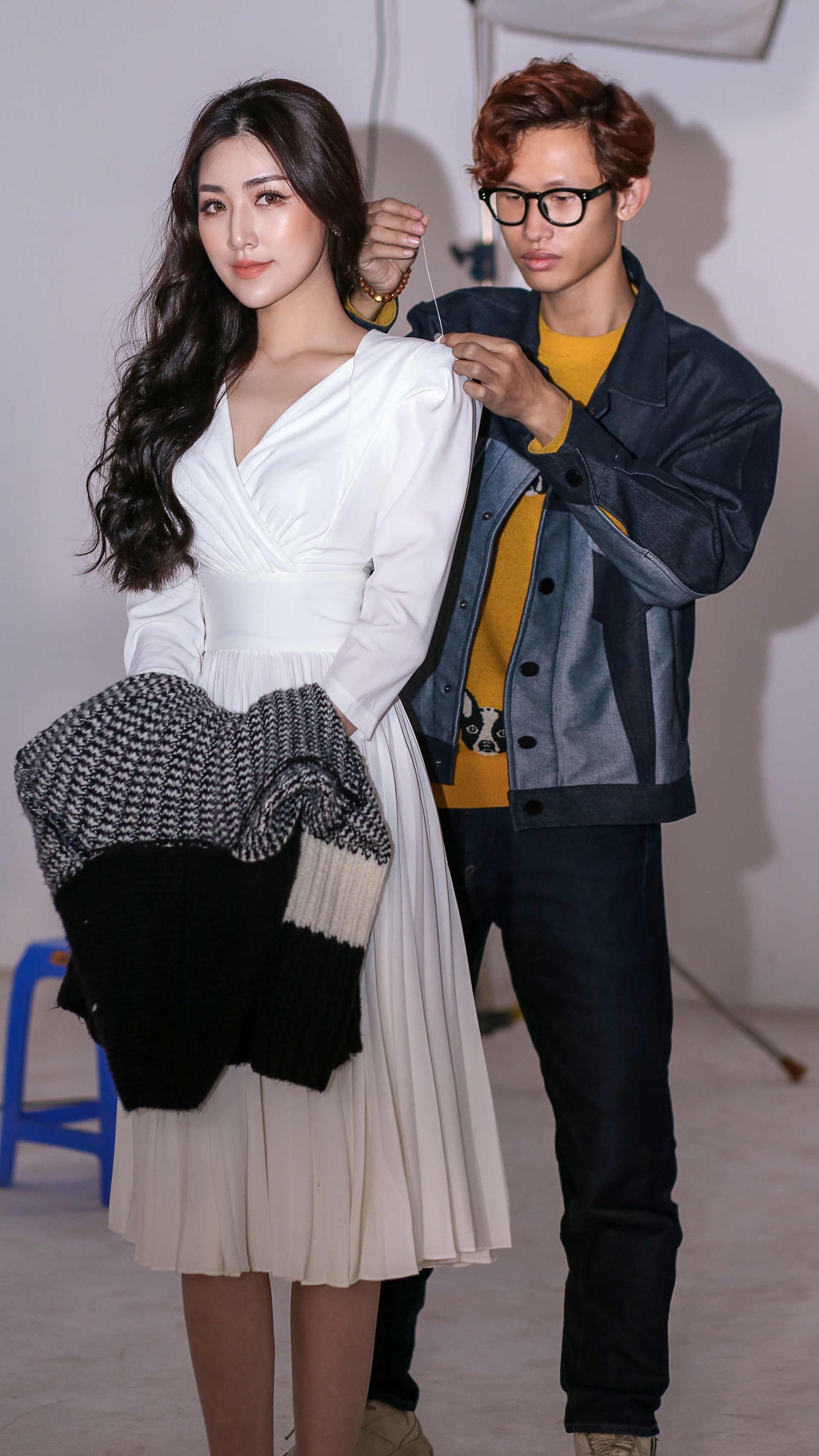 | Gần Tết là thời điểm nhiều nhãn hàng ra mắt bộ sưu tập áo dài. Tôi làm việc với diễn viên Quỳnh Nga nhằm giúp cô ấy có vẻ ngoài chỉn chu nhất khi chụp lookbook. |