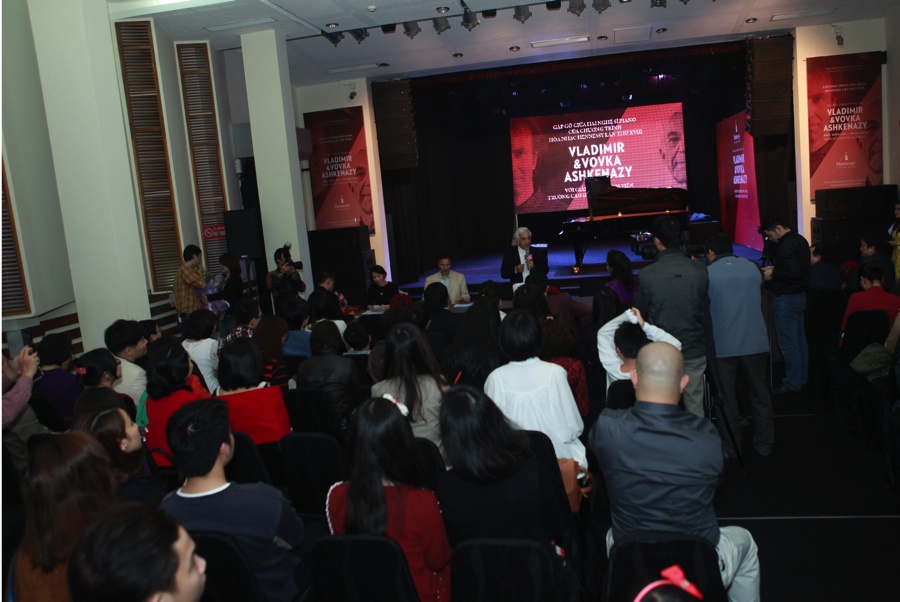 | Được tôn vinh là nghệ sĩ của thế kỷ nhưng Ashkenazy lại rất hòa đồng và hóm hỉnh. Ông mở đầu bằng việc hướng dẫn mọi người cách phát âm đúng tên gọi của mình. Mỗi khi một bạn sinh viên gọi đúng tên Vladimir Ashkenazy, ông lại giơ cao tay, nói "like" và cười thích thú. |
