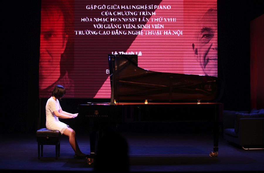 | Cha con nghệ sĩ dương cầm xuất sắc nhất thế kỷ nhận được nhiều câu hỏi trong buổi giao lưu với sinh viên trường CĐ Nghệ thuật Hà Nội. |