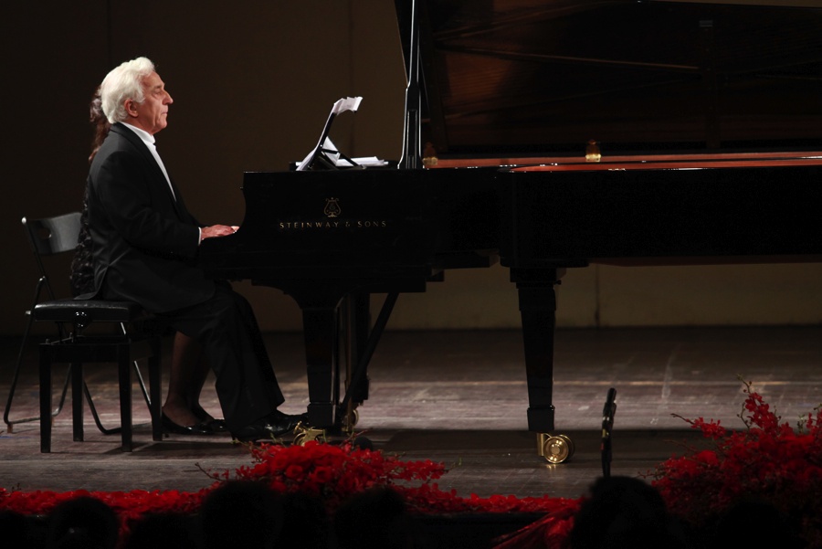 Không chỉ gửi tới người hâm mộ những bản song tấu ấn tượng, Vladimir Ashkenazy còn cúi người để ký tặng một khán giả đứng chờ bên dưới.