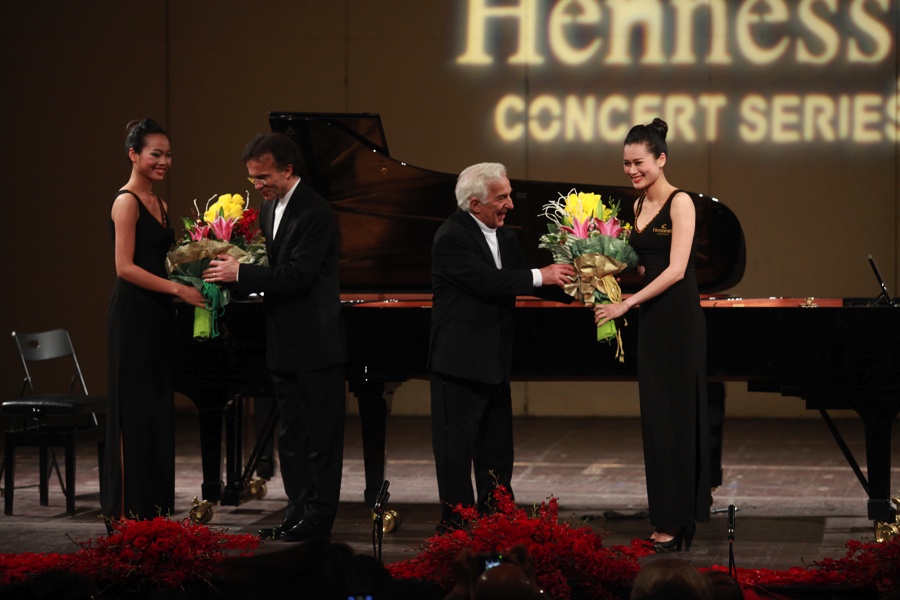| Trong đêm nhạc tổ chức tại Nhà hát Lớn Hà Nội tối 20/3, cha con Vladimir Ashkenazy và Vovka Ashkenazy cùng biểu diễn trên hai cây đàn Steinway & Sons được đặt đối diện nhau. Đây là chương trình song tấu dương cầm hiếm hoi ở chuỗi chương trình Hennessy Concert. Bốn bàn tay lướt trên hai cây đàn đòi hỏi những người nghệ sĩ phải có sự hòa quyện, thấu hiểu và không được phép để "lạc" nốt nhạc, phá hỏng bản nhạc. |