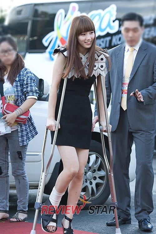 | Suzy bị thương ở mắt cá chân bị thương vì tập luyện. |