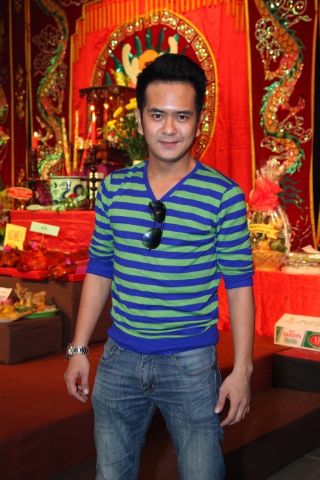 | Diễn viên Huy Khánh cũng có mặt trong lễ cúng Tổ ngành sân khấu do Mỹ Uyên "cầm chịch". |