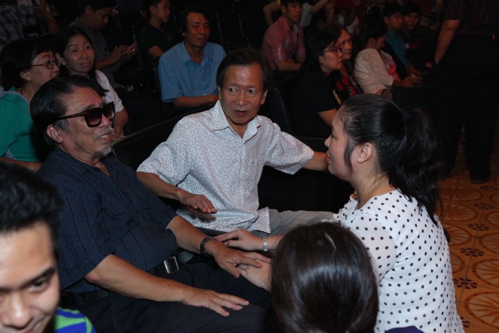 | Nhiều nghệ sĩ gắn bó với sân khấu kịch cũng có mặt để hỗ trợ nghệ sĩ Mỹ Uyên. |