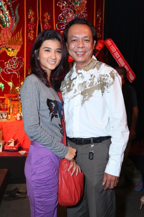 | Kim Tuyến bên nghệ sĩ Thanh Hoàng. |
