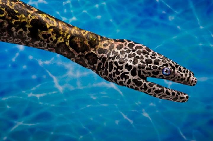 | Một chú trăn rừng với sự kết hợp màu sắc và họa tiết độc đáo hình thành từ cánh tay trái. |