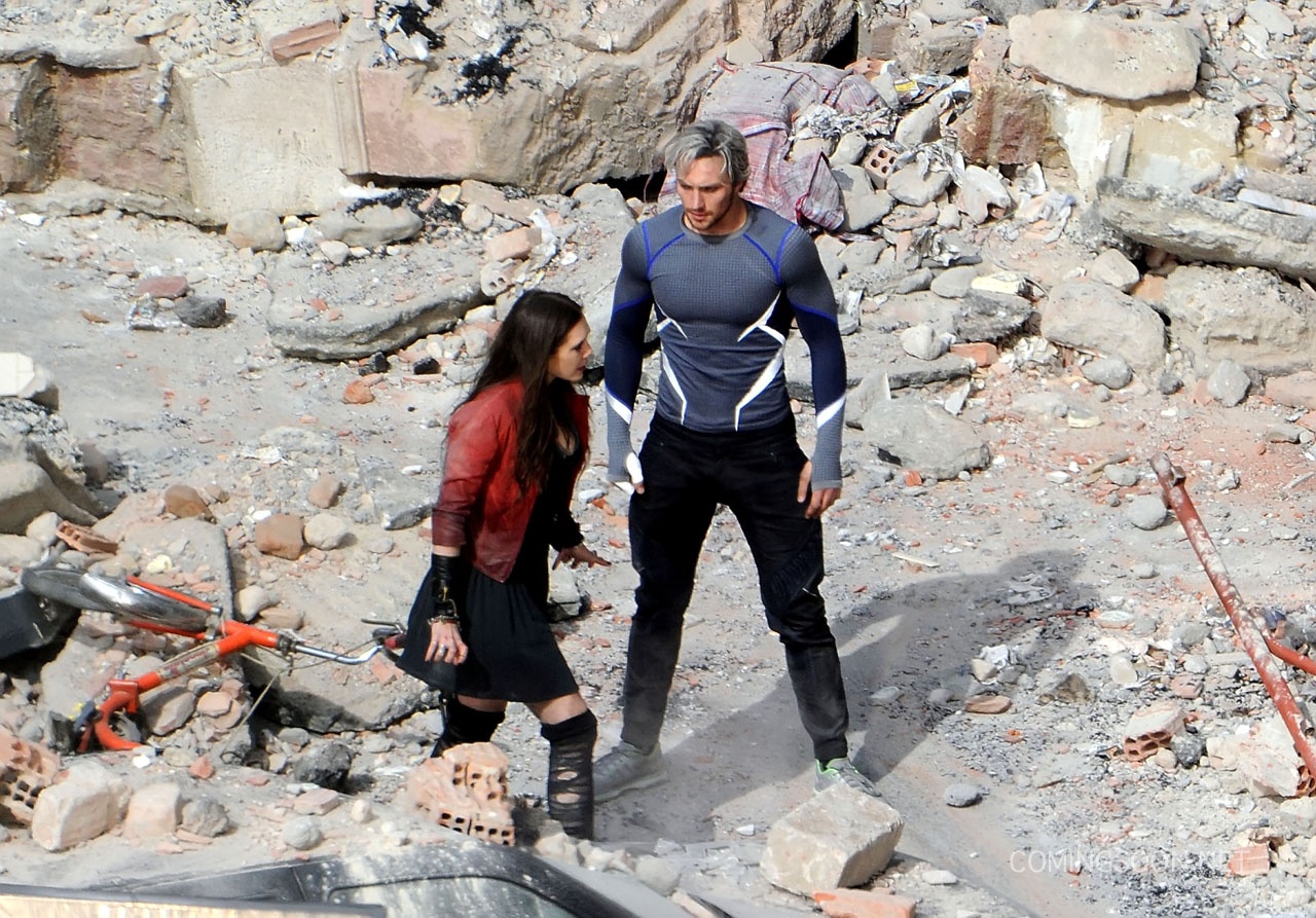 | Hình ảnh hai siêu anh hùng Quicksilver và Scarlet Witch trên phim trường của Avengers: Age of Ultron. |
