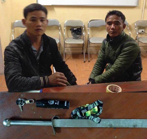Tại cơ quan công an, 2 người này khai tên Nguyễn Văn Hân (29 tuổi) và Lê Xuân Lân (43 tuổi, cùng trú xã Hồng Dương, Thanh Oai), đang trên đường đi trộm chó thì bị lực lượng chức năng phát hiện.