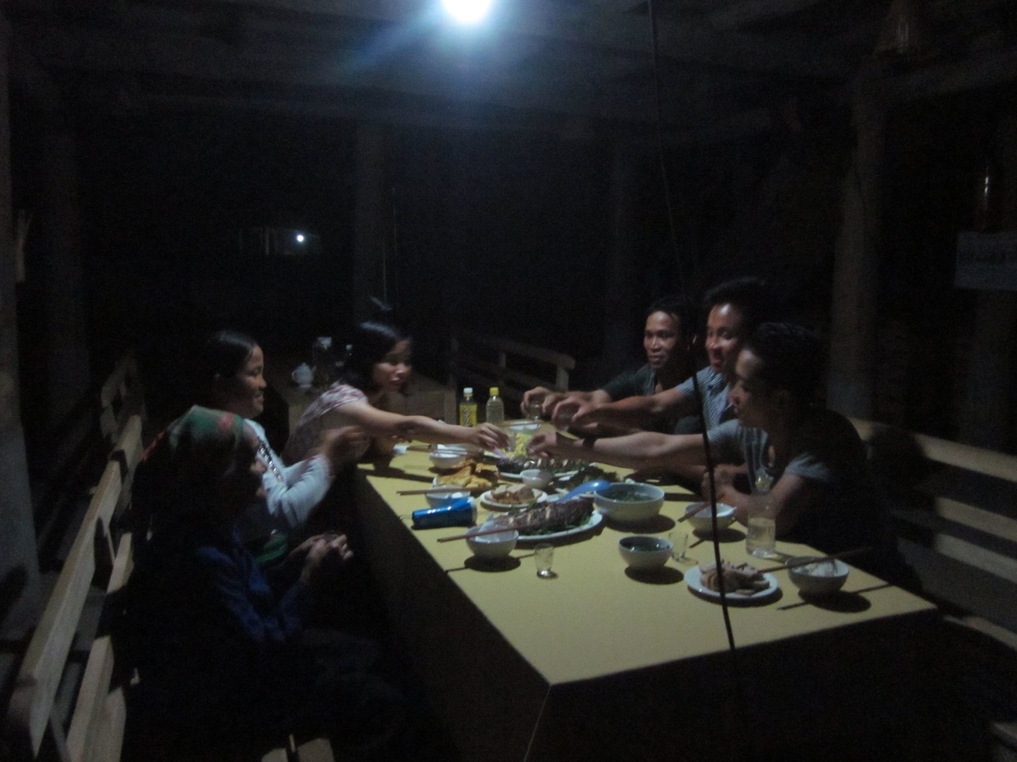 Chúng tôi chọn trải nghiệm buổi tối ở homestay Đinh Thu. Em Thu còn trẻ nhưng đã biết đứng ra làm kinh tế và nấu ăn rất khéo. Buổi tối ở xóm Đá Bia, chúng tôi cùng gia đình em thưởng thức món cá nướng sông Đà, hàn huyên các câu chuyện về người Mường, người Kinh. Em kể cho chúng tôi về những nét văn hóa, lịch sử nơi đây. Sự thân thiện, hiếu khách, hiền lành, chất phát, chịu thương chịu khó của những con người nơi đây làm cho tôi như đang trở về với người thân của mình.