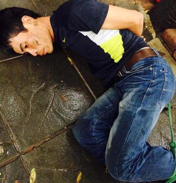 Đi ra kiểm tra, chị Yến thấy nhiều người đang dùng dây trói tay chân một người đàn ông dáng to cao, cạnh đó là xe máy của mình.