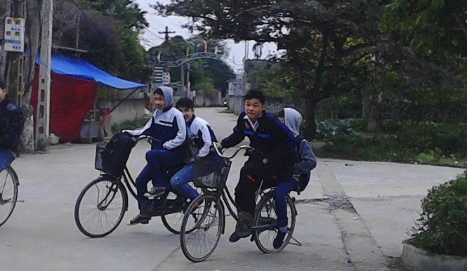 HS THCS thì nhiều em lượn xe quanh làng. HS tiểu học thì la cà vì tầm này bố mẹ chúng đã đi làm lâu rồi. Có em muốn về mà không có chìa khóa cửa. Dọc đường, nhiều đám túm mười tụm chín chơi bi, đánh đáo... Có đám còn leo cả lên đống gạch nô đùa. Trời vẫn rét!