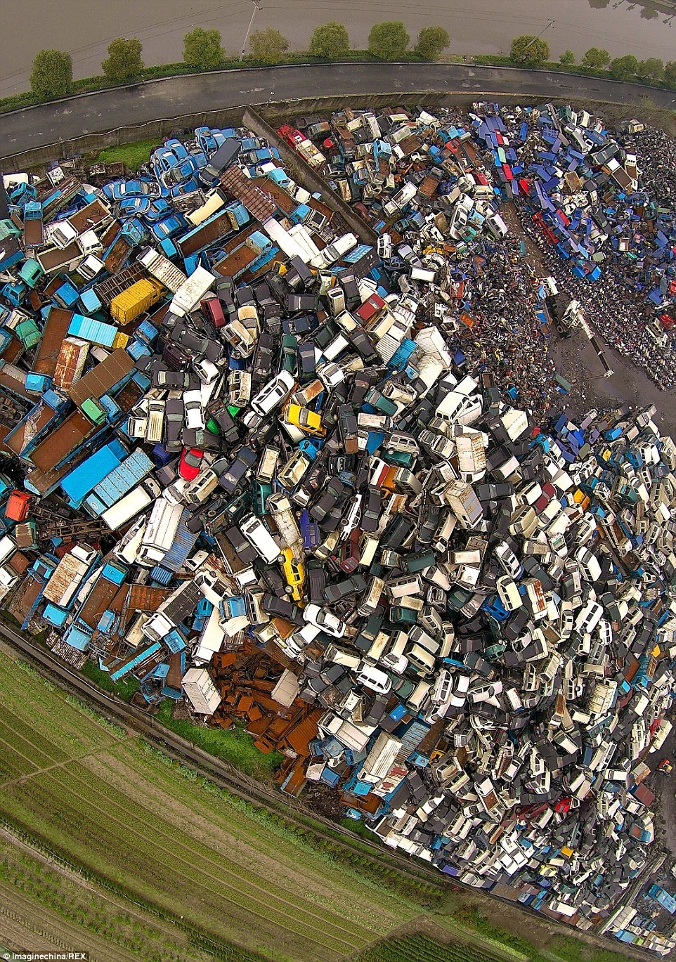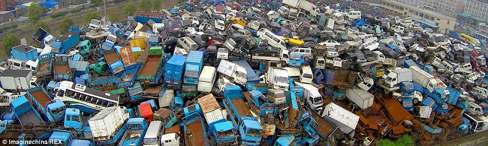 Toàn bộ số xe không đủ điều kiện lưu thông trên đường theo quy định của chính phủ Trung Quốc đều bị tịch thu và tập kết về những bãi phế thải khổng lồ tại thành phố Hàng Châu.