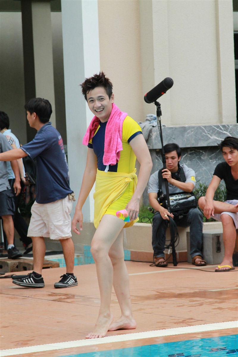 Ngô Kiến Huy mặc váy nấu ăn ở phim trường
