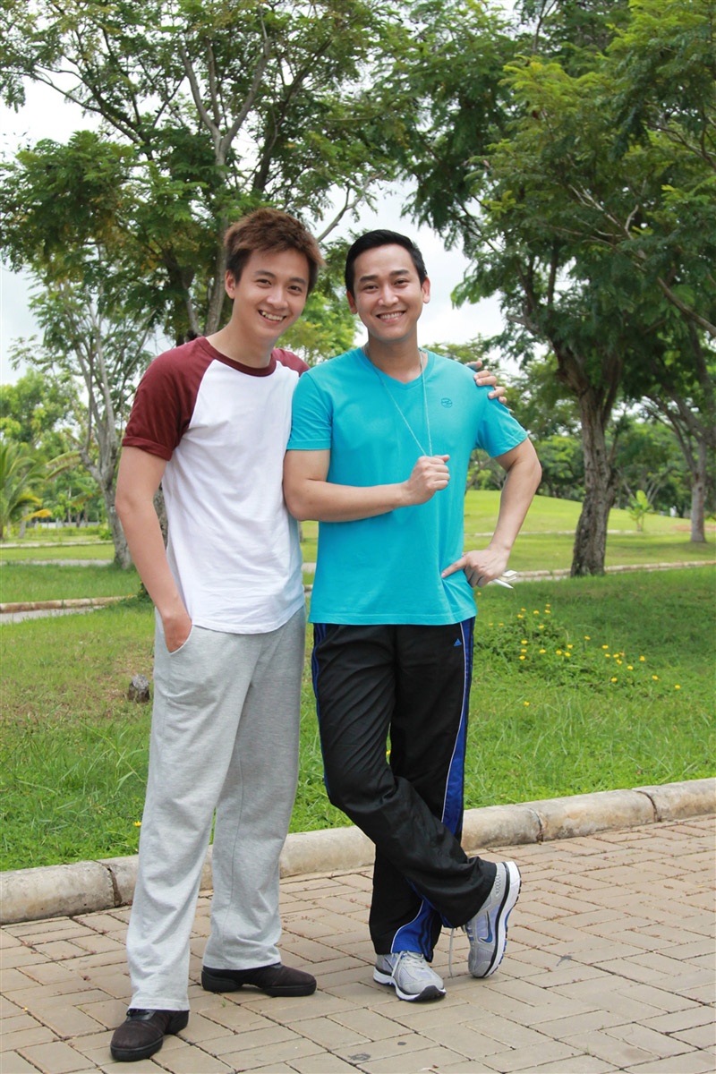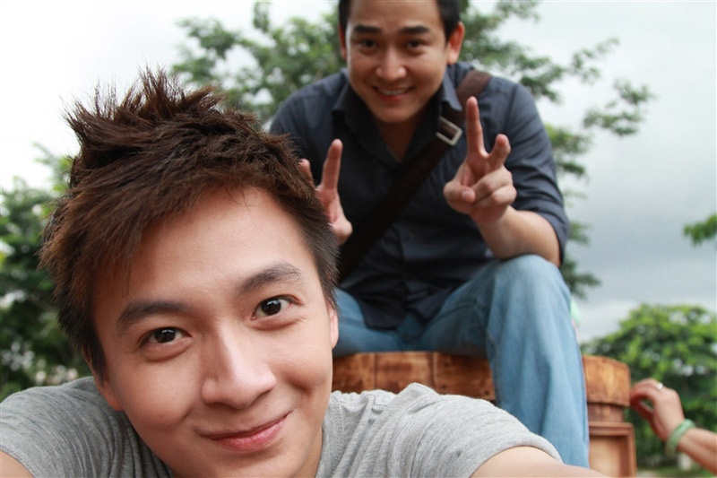Trong những giờ nghỉ, nam ca sĩ tranh thủ chụp hình cùng diễn viên Hứa Vĩ Văn. Trong phim, hai người có nhiều cảnh quay chung.