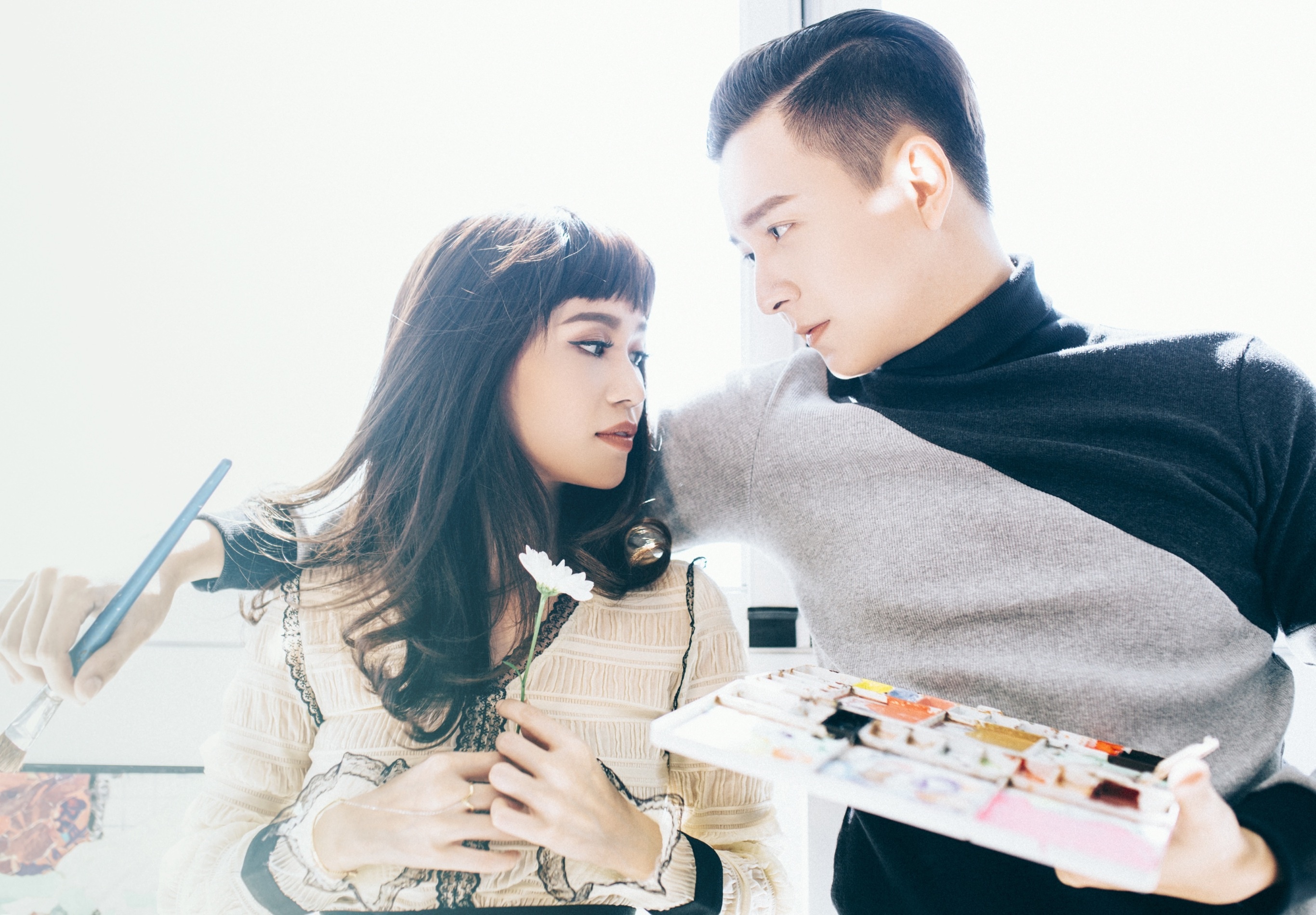 Ngô Kiến Huy và Sĩ Thanh cũng đã thực hiện bộ ảnh tình tứ dịp Valentine. Nam ca sĩ vào vai chàng hoạ sĩ điển trai đang vẽ tranh cho người yêu mình. Dù lần đầu kết hợp nhưng cả hai làm việc rất ăn ý và hay trêu đùa hậu trường.