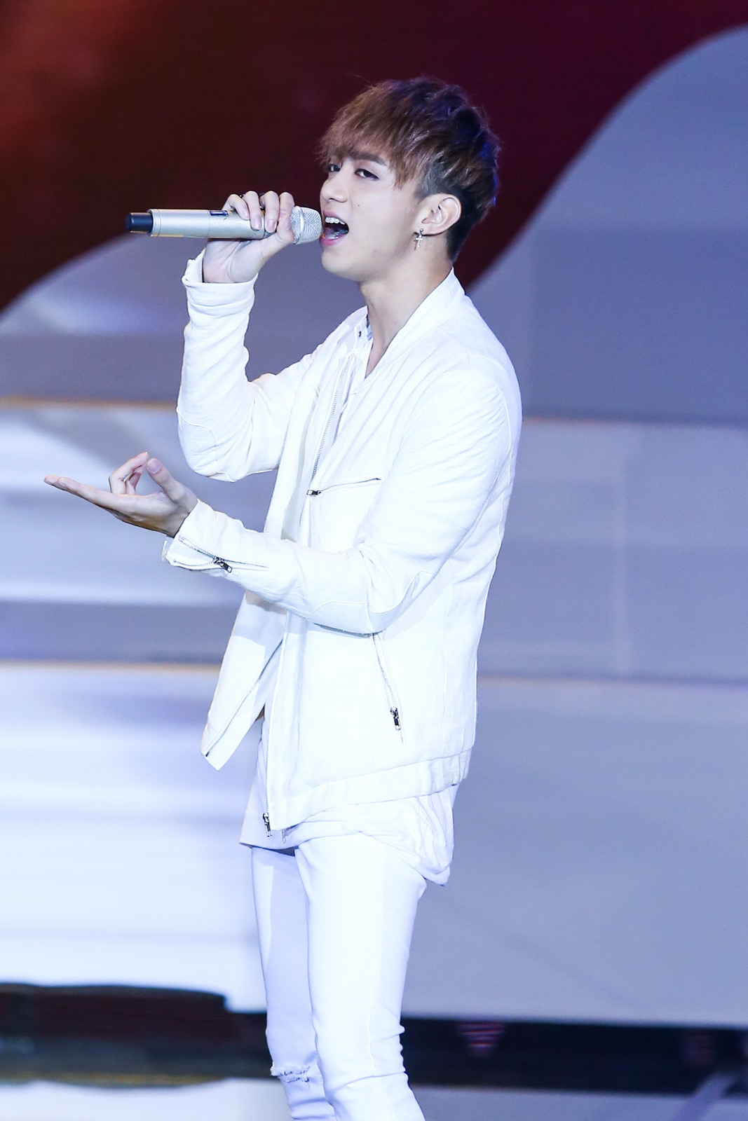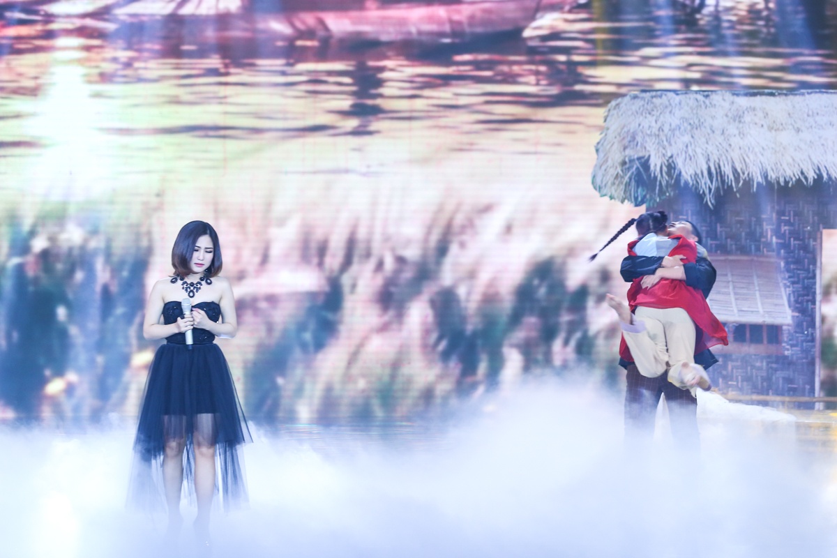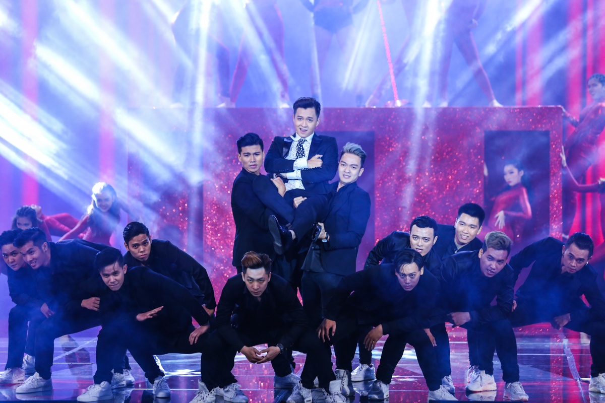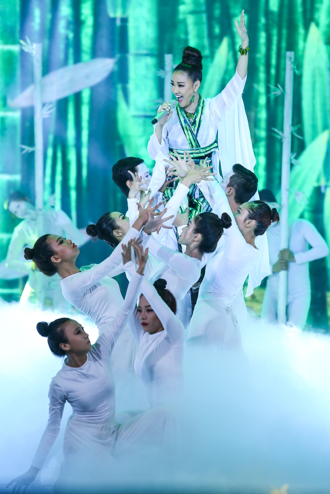 | Vũ Cát Tường vừa hát vừa nhảy trong tiết mục Mơ. Cô thể hiện sự khâm phục với khả năng và quyết tâm của các đội thi. |