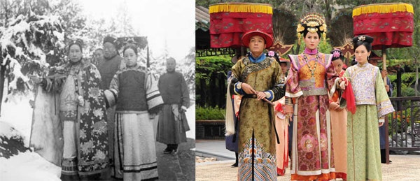 | Dù biết là có sự cách biệt nhưng nhiều người không khỏi giật mình khi được chiêm ngưỡng vẻ đẹp của các phi tần thời xa xưa. Ảnh bên phải là cảnh trong phim Hậu cung Chân Hoàn truyện. |