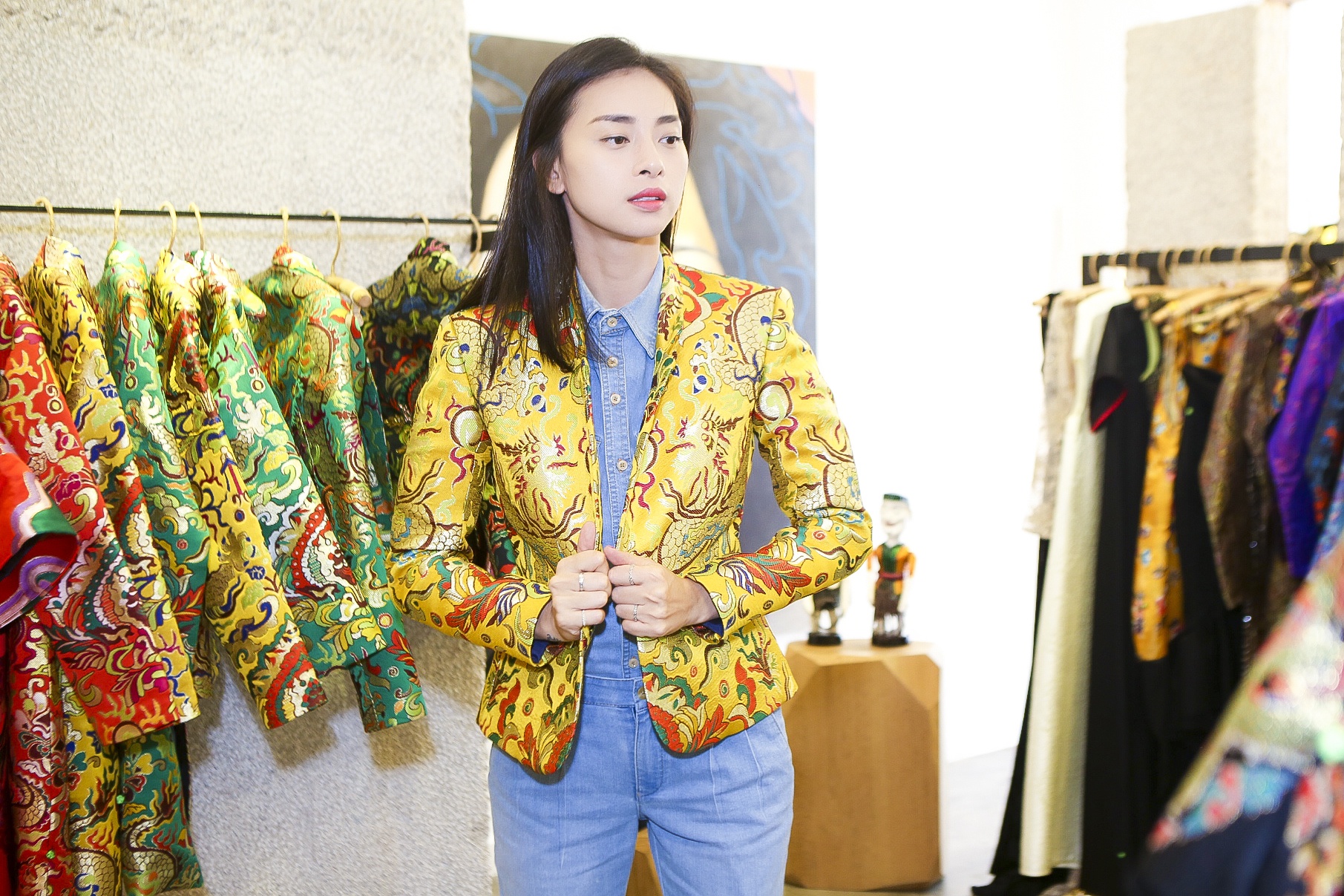 | Trong lần thử trang phục này, người đẹp điện ảnh chọn ra nhiều mẫu váy ưa thích. Đặc biệt, cô chuộng những bộ đầm họa tiết rồng phụng truyền thống. Thiết kế có chất liệu lụa dân gian quen thuộc được nhà thiết kế phối hợp cùng kiểu dáng hiện đại rất ăn ý. |