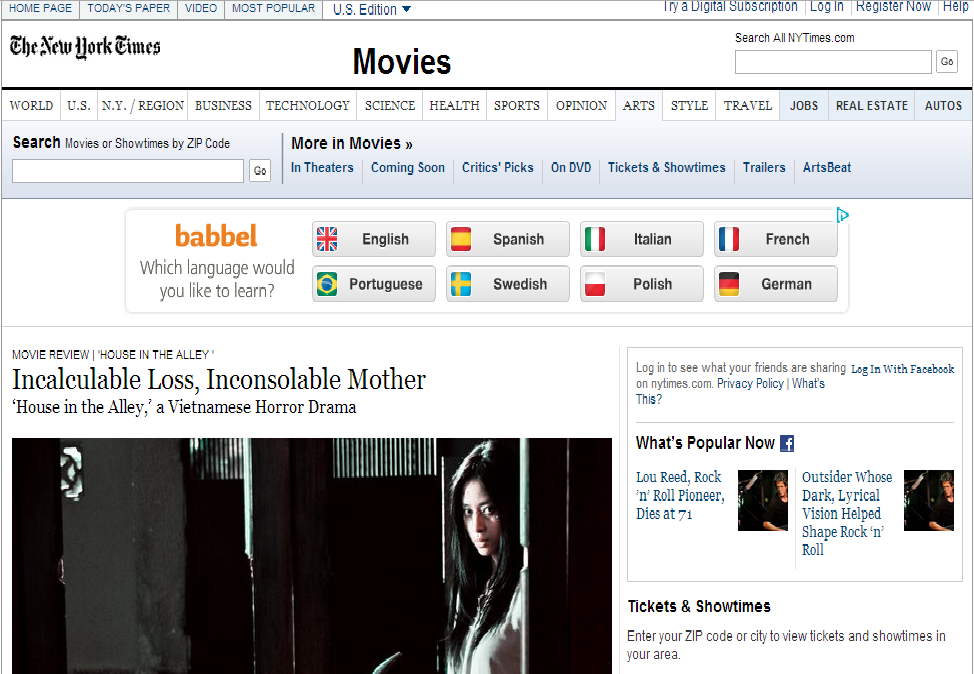 | Bài viết ca ngợi phim Ngôi nhà trong hẻm trên The New York Times. |