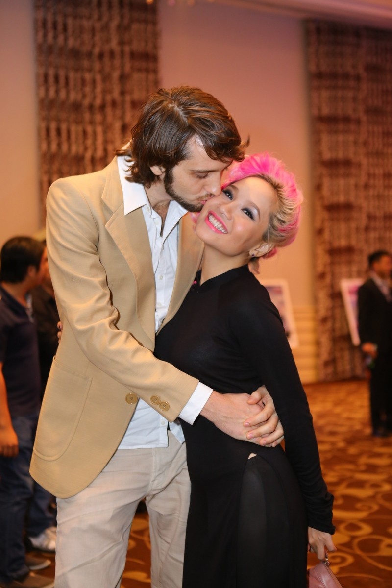 Vợ chồng ca sĩ Mai Khôi không ngần ngại thể hiện tình cảm giữa đám đông.