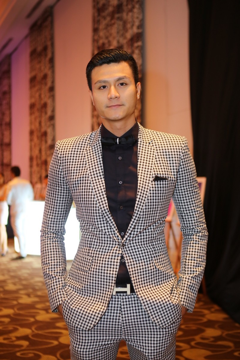 Người mẫu Vĩnh Thụy lịch lãm với bộ vest ca-rô hiện đại. Anh hiếm khi tham dự các sự kiện showbiz nên mỗi lần xuất hiện đều tạo sự chú ý nhất định với quan khách và truyền thông.