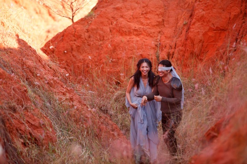 Ngô Thanh Vân và Dustin Nguyễn trong cảnh quay đón hoàng hôn trên chiến trường.