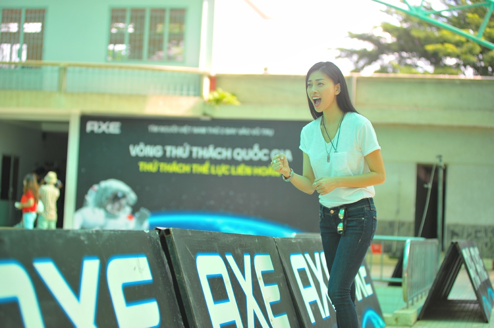 Trong vai trò giám khảo vòng chung kết cuộc thi Axe - Tìm người Việt Nam thứ 2 bay vào vũ trụ, nữ diễn viên xinh đẹp cũng đã có mặt tại Thử thách thể lực liên hoàn để ủng hộ cho 11 bạn trẻ.