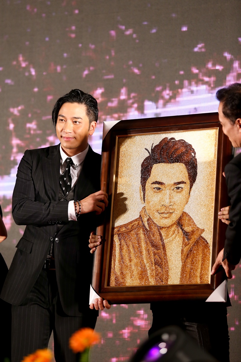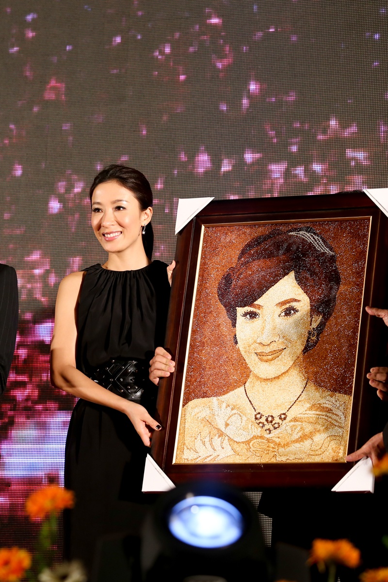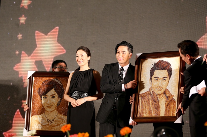 Bức tranh vẽ chân dung của Dương Di và Ngô Trác Hy được làm bằng gạo. |