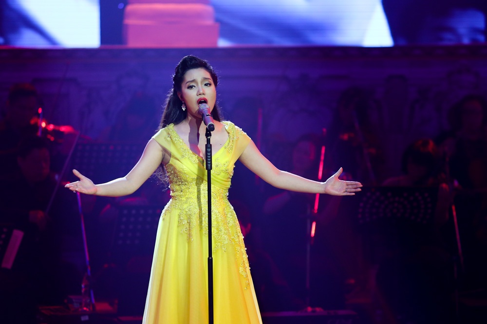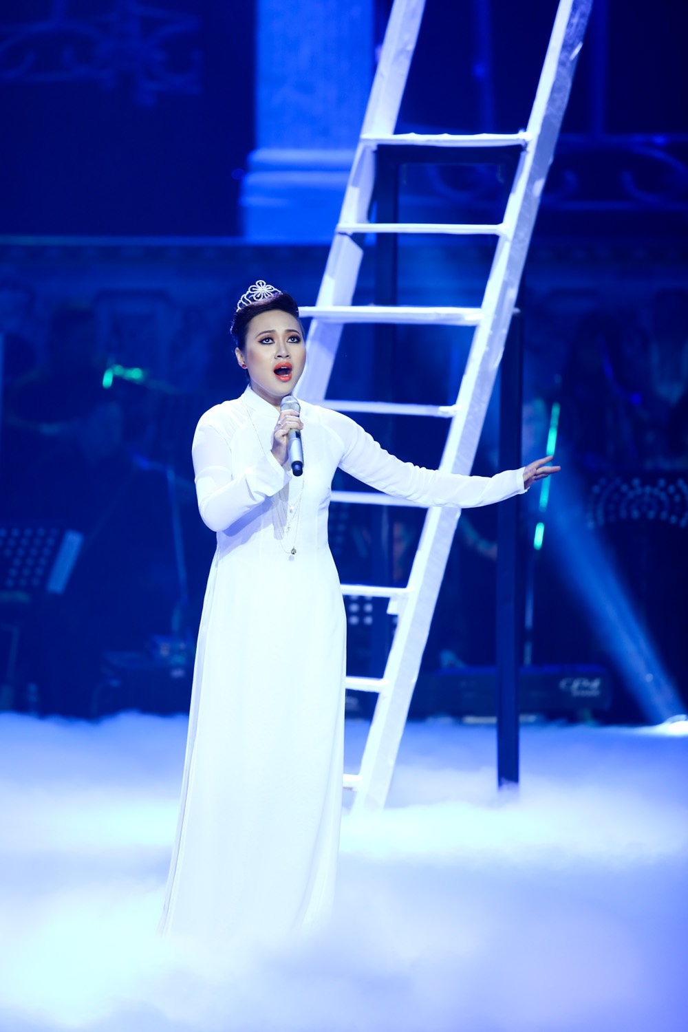 Ở vòng đầu hát nhạc thính phòng bằng ca khúc Việt, Khánh Linh chọn Họa mi hót trong mưa của nhạc sĩ Dương Thụ. Bài hát được phối mới khiến nhiều người thích thú. Trên sân khấu, Khánh Linh giản đơn không màu mè. Màu áo dài trắng tinh khôi hòa quyện với sự tinh tế, dạt dào cảm xúc trong giọng hát làm khán phòng lặng đi. |