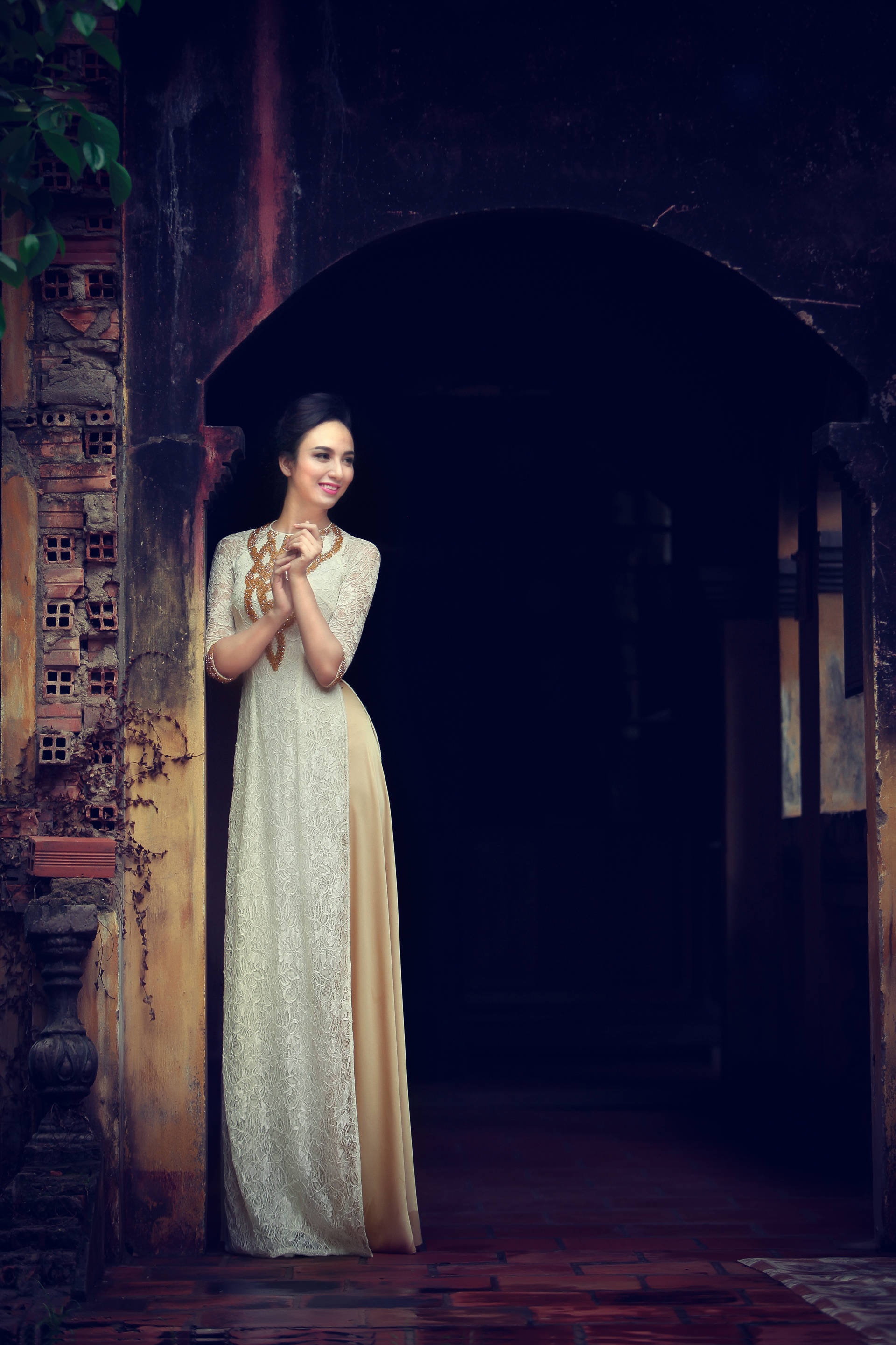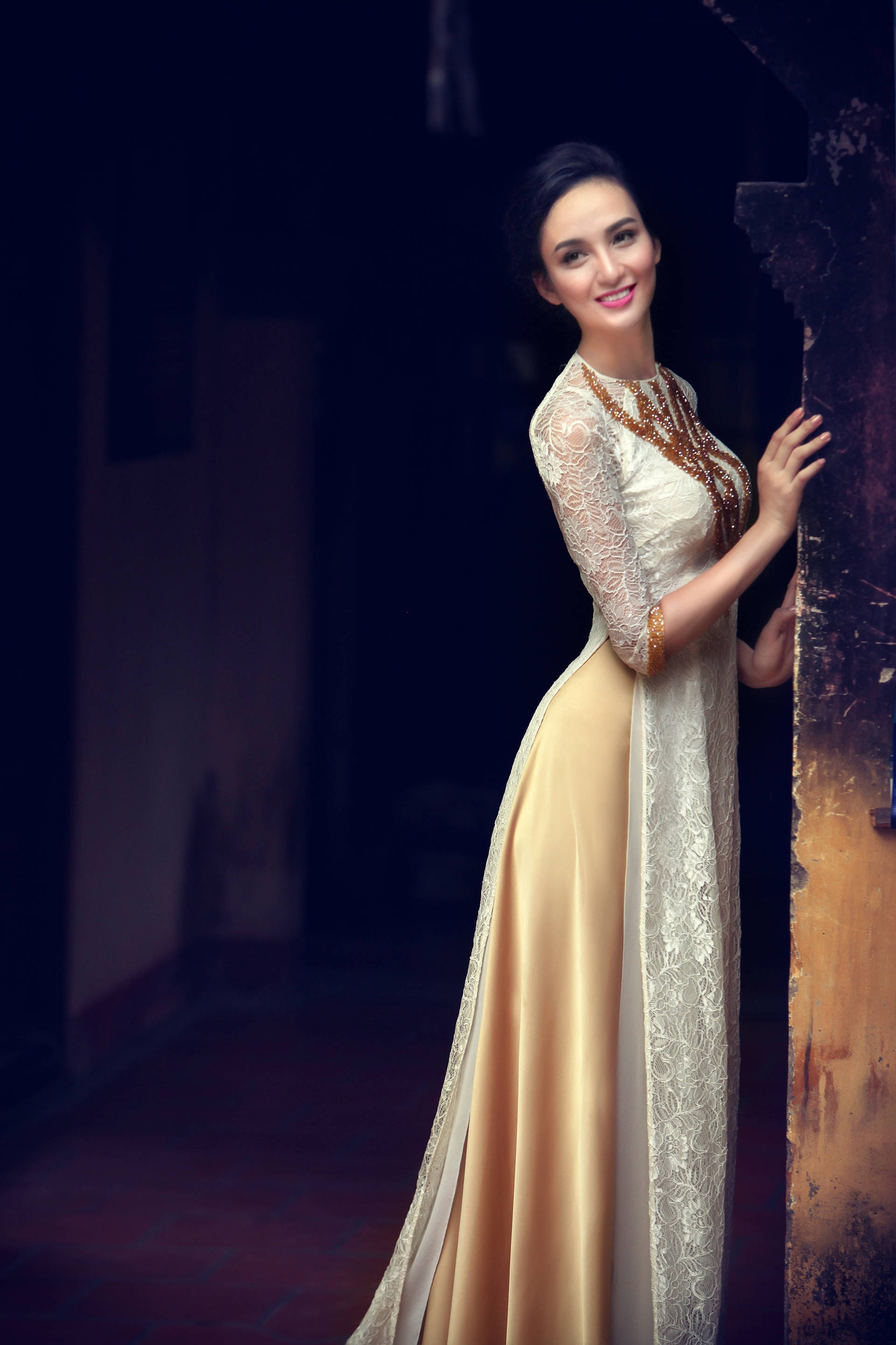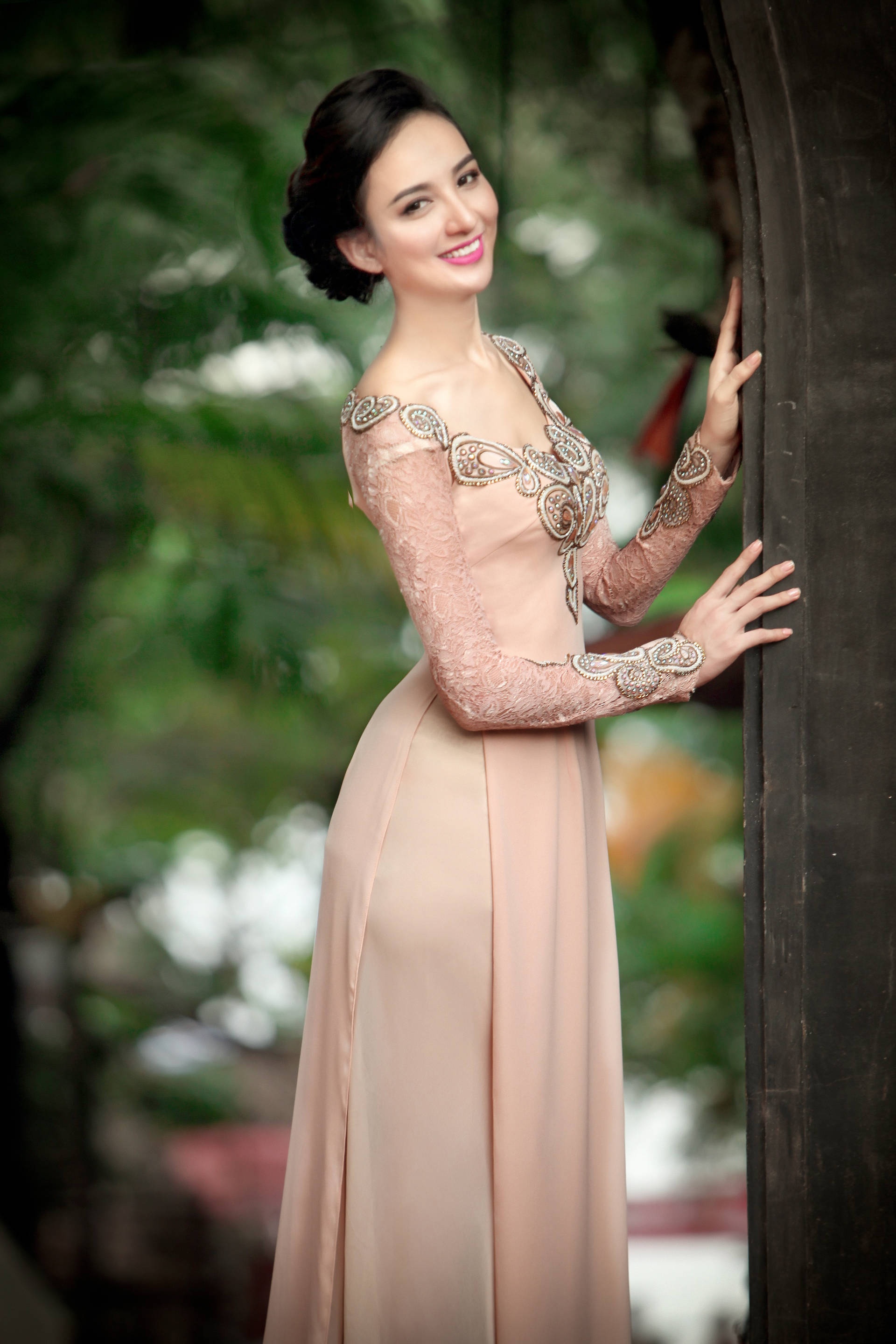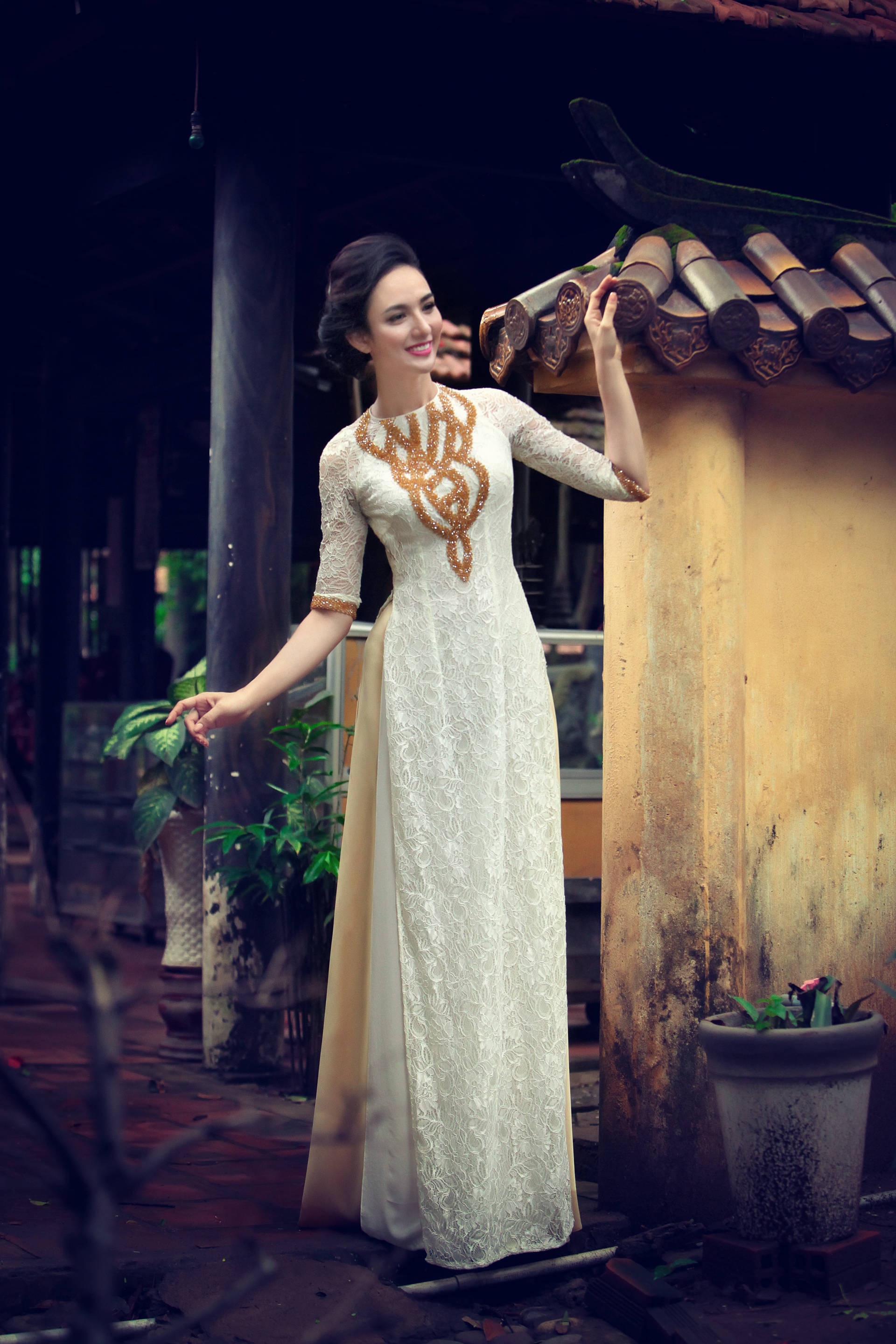 | Sở hữu gương mặt thuần nét châu Á và vóc dáng cân đối, hoa hậu thể hiện thành công bộ ảnh đậm nét truyền thống. |