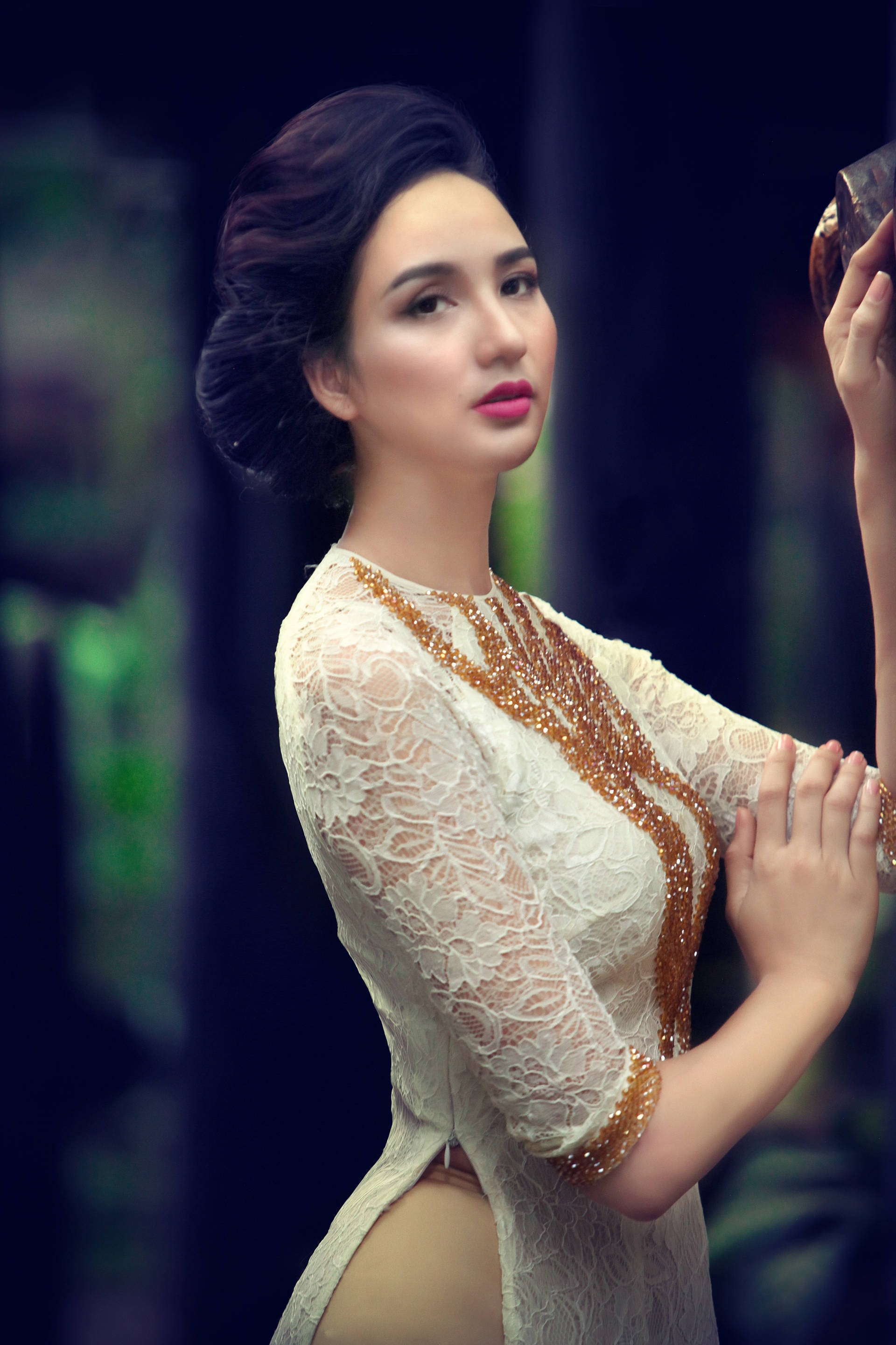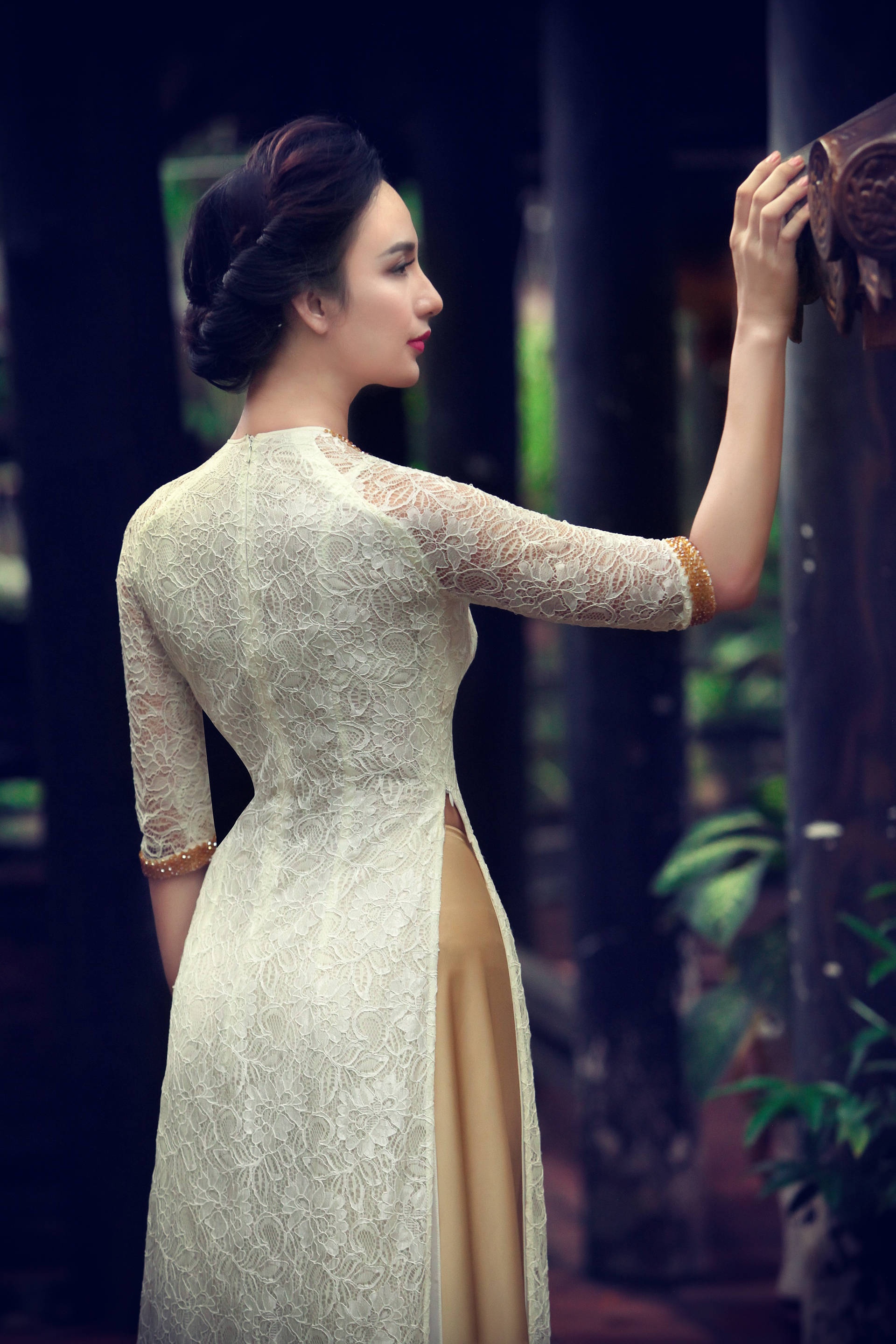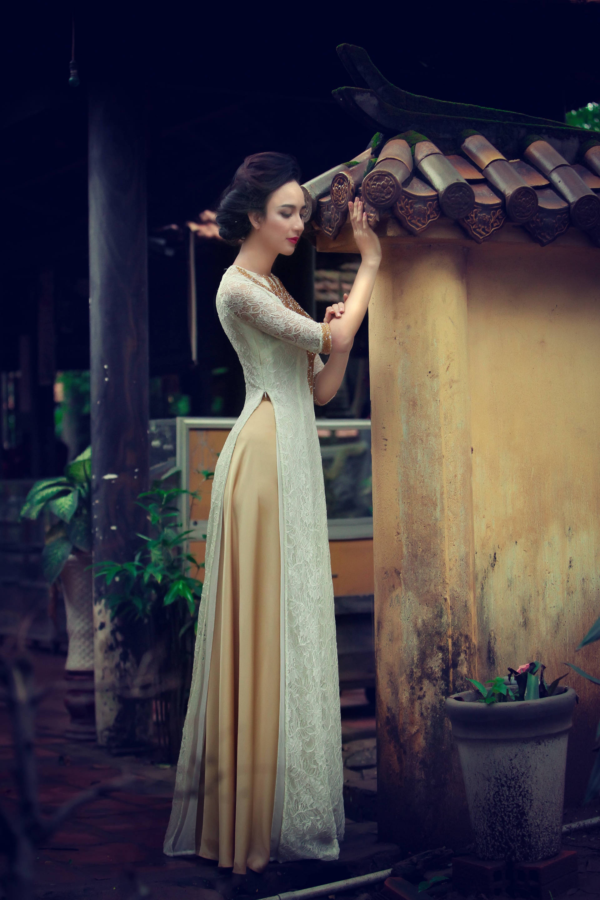 | Sở hữu gương mặt thuần nét châu Á và vóc dáng cân đối, hoa hậu thể hiện thành công bộ ảnh đậm nét truyền thống. |