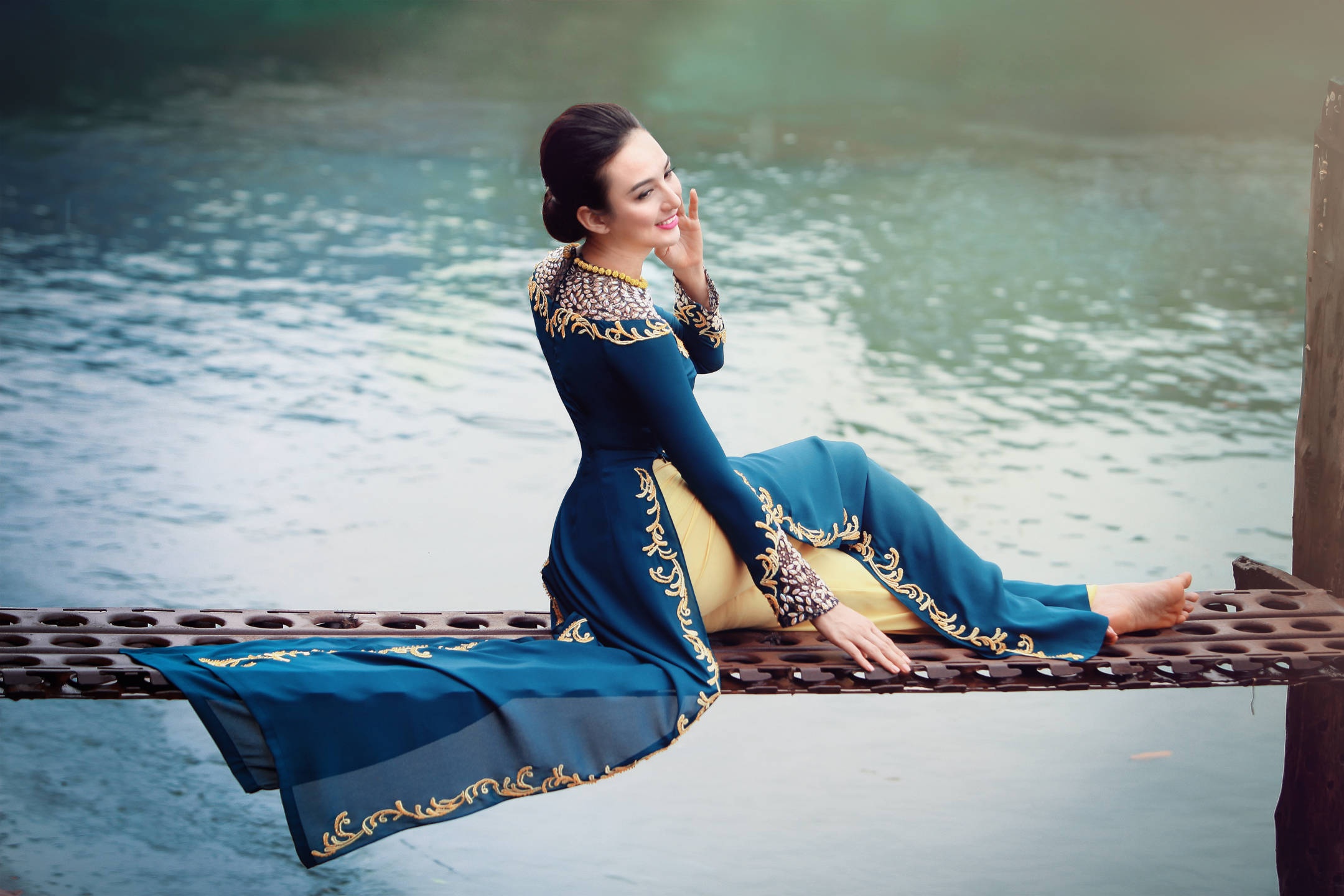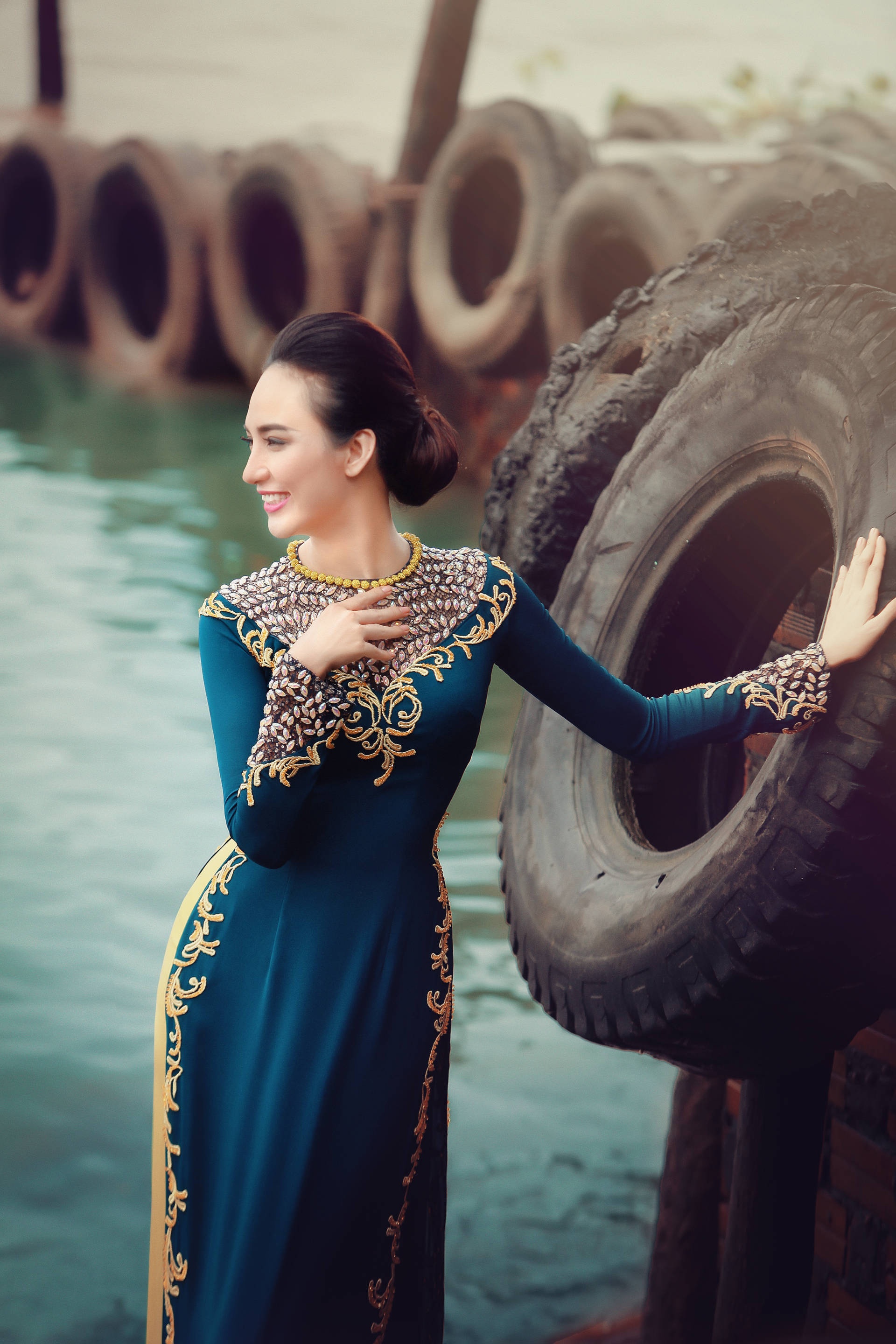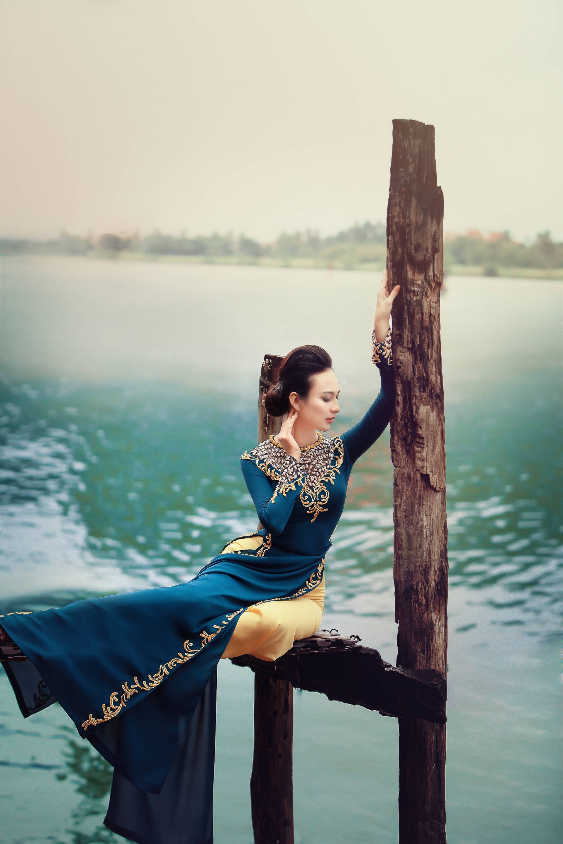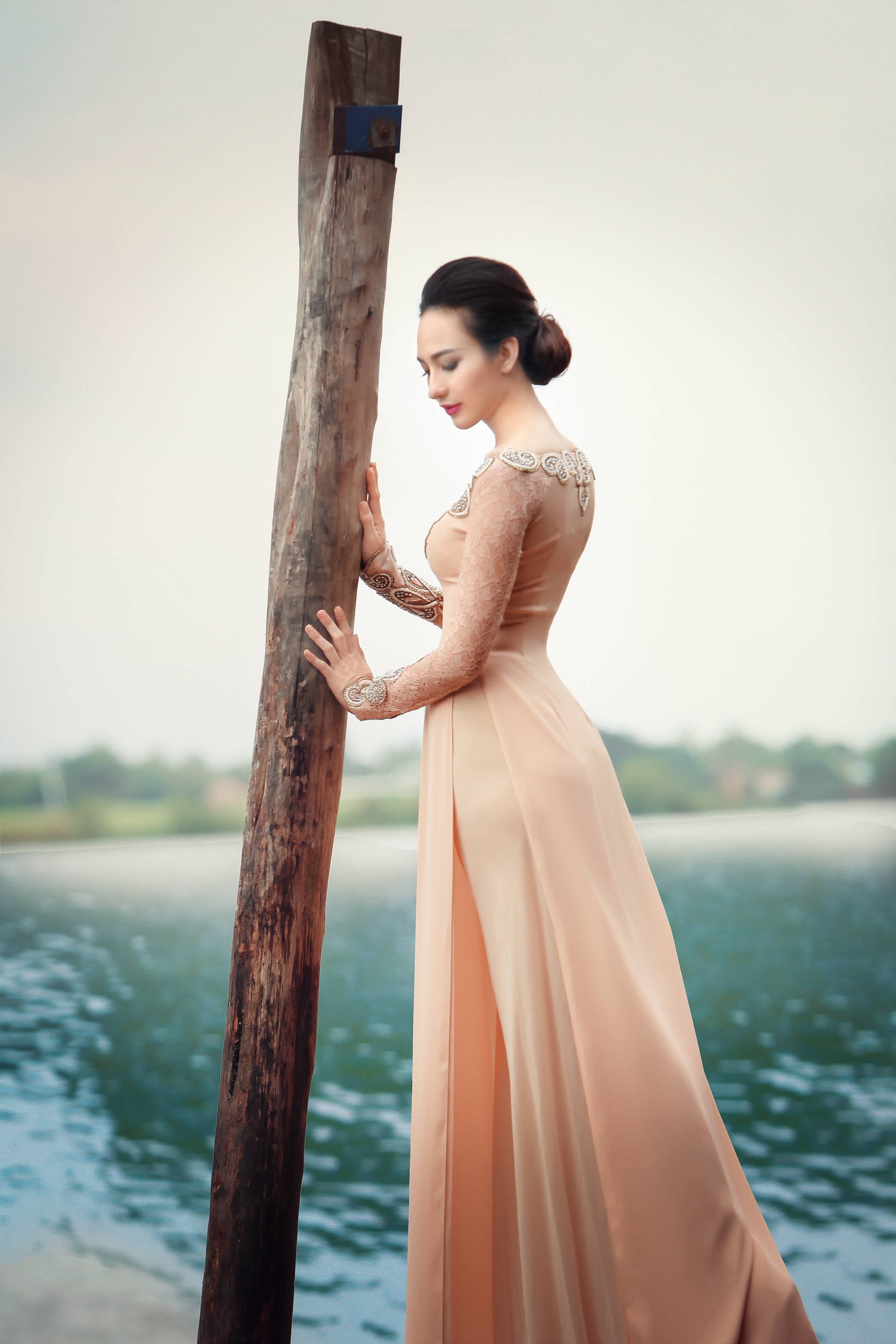 | Sở hữu gương mặt thuần nét châu Á và vóc dáng cân đối, hoa hậu thể hiện thành công bộ ảnh đậm nét truyền thống. |