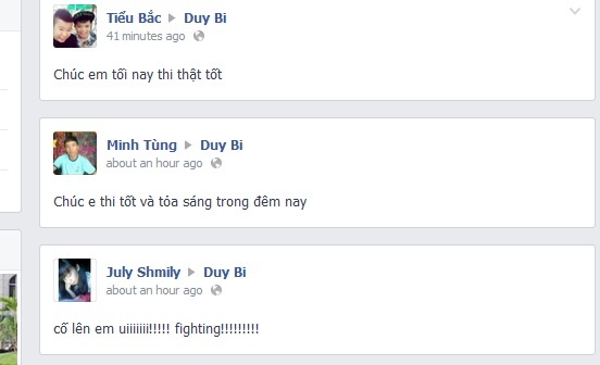 Có thể vì lý do này mà càng sát tới đêm chung kết, các fan của Ngọc Duy càng thi nhau gửi những lời chúc đến cậu bé với những tâm sự hết sức gần gũi và hóm hỉnh ngay trước khi đêm chung kết bắt đầu.