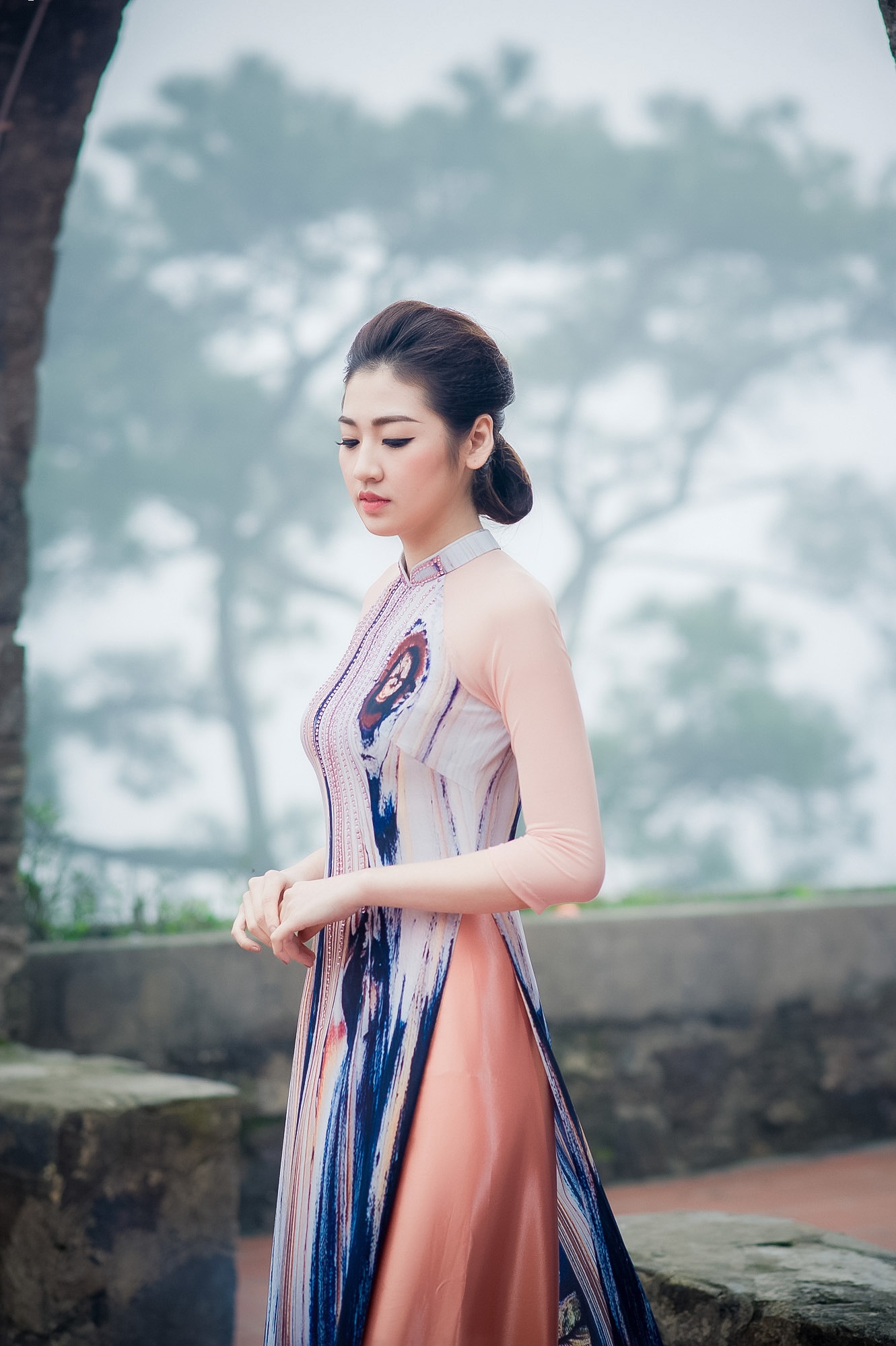 | Các mẫu áo dài của NTK Vũ Việt Hà đều có những đường cắt cúp đơn giản nhưng thanh lịch và sang trọng. Đây cũng là hình ảnh mà Ngọc Hân và Dương Tú Anh hướng tới. |