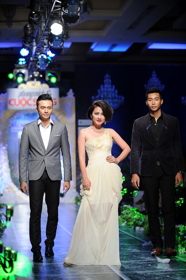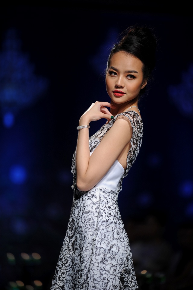 | Tối 28/10, diễn viên Ngọc Lan đảm nhận vai trò người mẫu trình diễn một số bộ sưu tập thuộc chương trình Phong cách & Cuộc sống số tháng 10. Trên sàn diễn show thường niên, cô trông rạng rỡ và tươi tắn. "Kiều nữ" diện bộ váy dạ hội gam trắng, làm nổi bật bộ trang sức kim cương trị giá 4 tỷ đồng của NTK Ngọc Đoàn. |