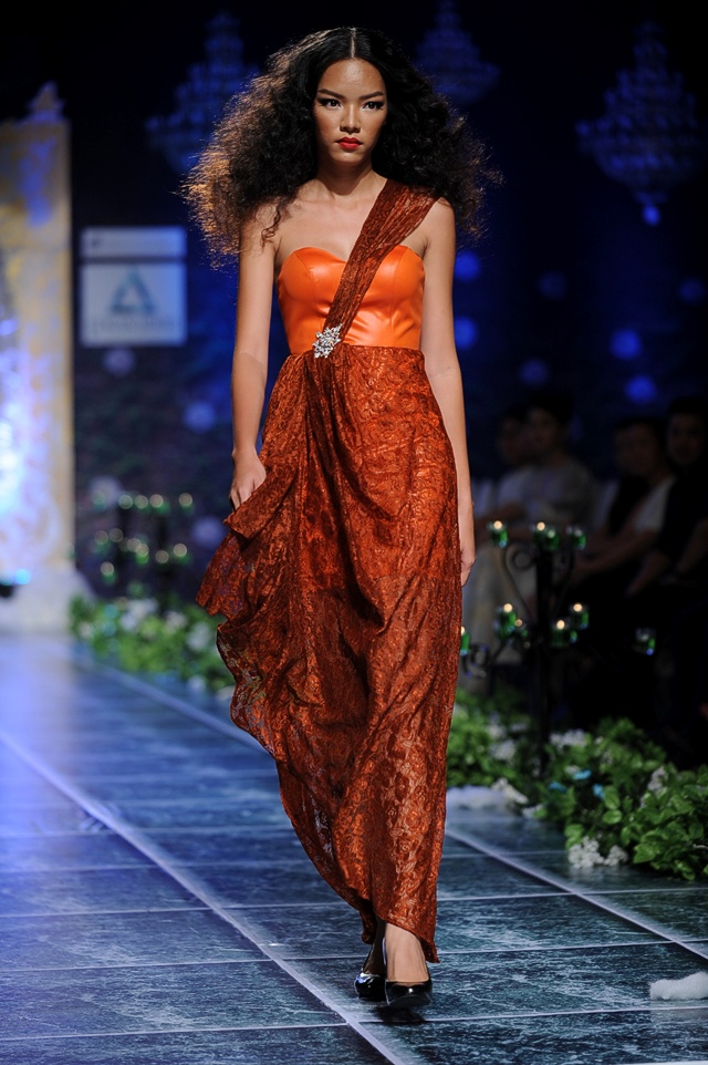 | Lệ Hằng diện đầm dạ hội xẻ cao nổi bật trên sàn catwalk, bộ trang sức trị giá 3 tỷ đồng làm điểm nhấn nhá quý phái và sang trọng khi tham dự các buổi tiệc. |